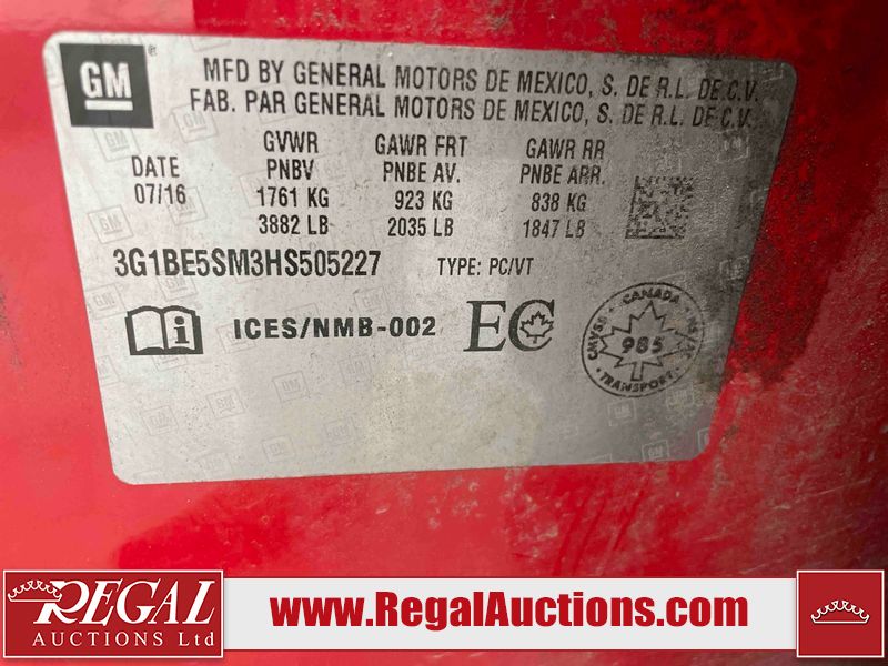 2017 CHEVROLET CRUZE LT 4D SEDAN FWD 1.4L