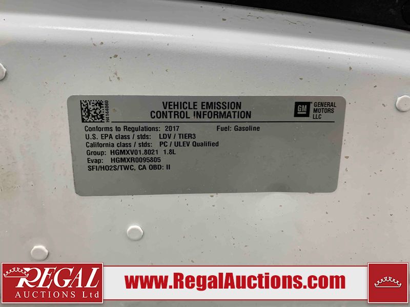 This 2017 CHEVROLET SONIC LT 4D SEDAN is powered by a 1.8L 4-cylinder gasoline engine and an automatic transmission. The car has seats for 5 people. The car has low mileage for its age. The vehicle has high-value options including a backup camera. The Tire Pressure light is on. The body looks to be in fair condition overall. There are chips on the front bumper. There is dent damage on the front bumper. There is rust on the left front door. There is minor paint peeling on the left front door and left rear fender. There are very minor scratches in many areas around the body. There are very minor chips in many areas around the body. The interior looks to be in fair condition overall. The dashboard is worn. The driver's seat, passenger seat, and rear seats are stained. The windshield is cracked. All of the tires have lots of tread remaining. This car is being sold by an automotive broker. Regal Auctions Ltd. makes no guarantee or warranty, either express or implied, with respect to the data provided in this report. The information has been provided from the consignor and from sources generally believed to be reliable, however the accuracy of this information cannot be guaranteed by Regal Auctions.