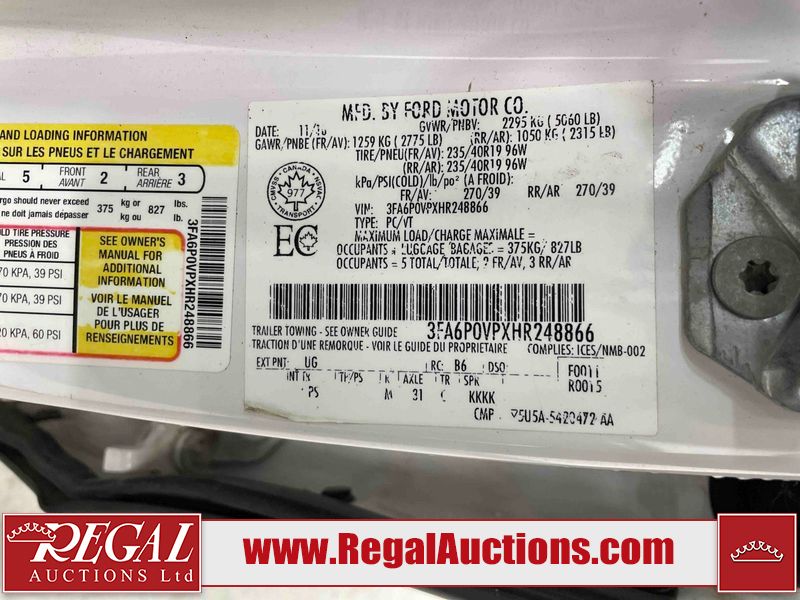 2017 FORD FUSION V6 SPORT 4D SEDAN AWD 2.7L