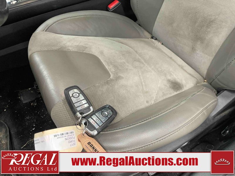 This 2017 FORD FUSION V6 SPORT 4D SEDAN AWD 2.7L is powered by a turbocharged 6 cylinder gasoline engine and an automatic transmission. It is equipped with four wheel drive. The car has seats for 5 people. The mileage is average considering the car's age. The vehicle has high value options including a sunroof, leather upholstery, power seats, heated seats, navigation, and a backup camera. The vehicle has some mechanical problems. The engine has a top end tick. The body looks to be in fair condition overall. There is some paint peeling on the front bumper and right rear fender. There are incidental chips on the front bumper, hood, roof, left front fender, left front door, left rear door, and rear bumper. There are slight scratches on the front bumper and rear bumper. There is incidental paint peeling on the right front fender. There are very minor chips in many areas around the body. There are very minor scratches in many areas around the body. The interior looks to be in fair condition overall. The driver's seat, passenger seat, and rear seats are stained. The doors are dirty. The carpet is dirty. The windshield is chipped. All of the tires have lots of tread remaining. Aftermarket alloy rims with tires have been mounted, the factory alloys are missing. There is no emission sticker.