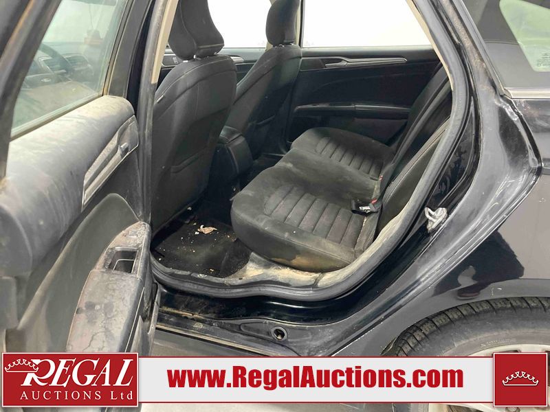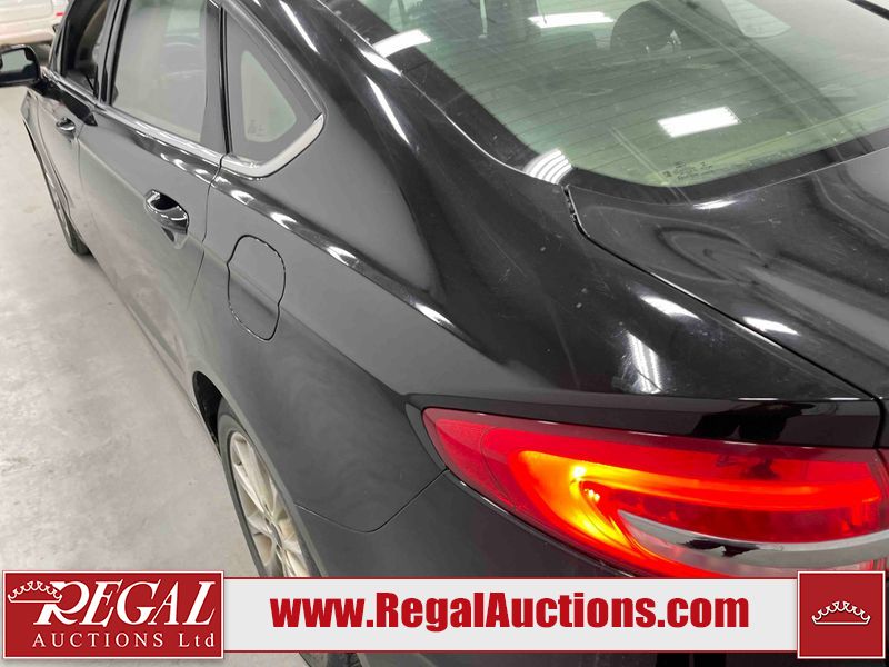 This 2017 FORD FUSION SE 4D SEDAN FWD 2.5L is powered by a 4 cylinder gasoline engine and an automatic transmission. The car has seats for 5 people. The mileage is average considering the car's age. The vehicle has high value options including a sunroof, power seats, heated seats, and a backup camera. The body looks to be in fair condition overall. There are incidental chips on the front bumper, hood, roof, left front fender, left front door, left rear door, left rear fender, and right front door. There is slight paint peeling on the right rear fender. There are very minor scratches in many areas around the body. There are very minor chips in many areas around the body. There is very minor dent damage on the right rear door. The interior looks to be in rough condition overall. There are pronounced cigarette burns on the driver's seat. The passenger seat and rear seats are stained. The rear seats and doors are dirty. The carpet is dirty. The roof liner is dirty. The windshield looks to be in good condition. The passenger side rear tire is nearly bald and should be replaced. The passenger side front tire and the driver's side rear tire are both worn.