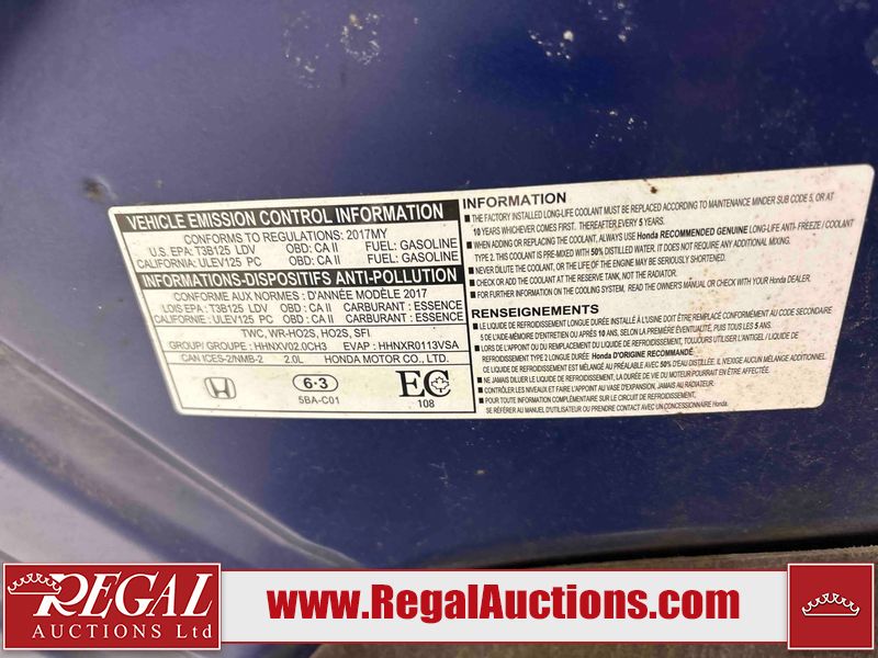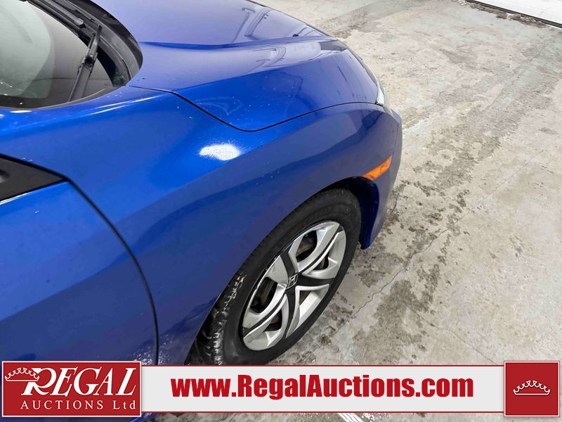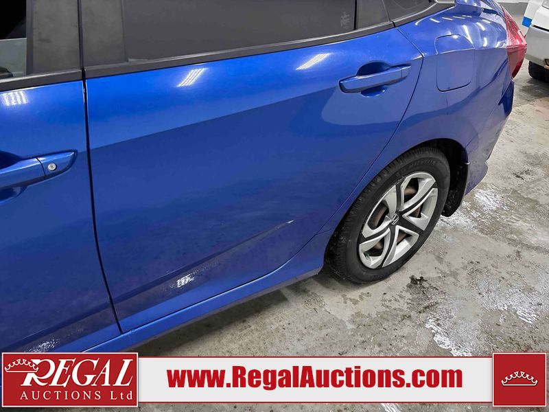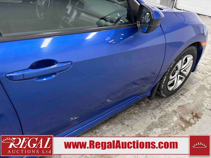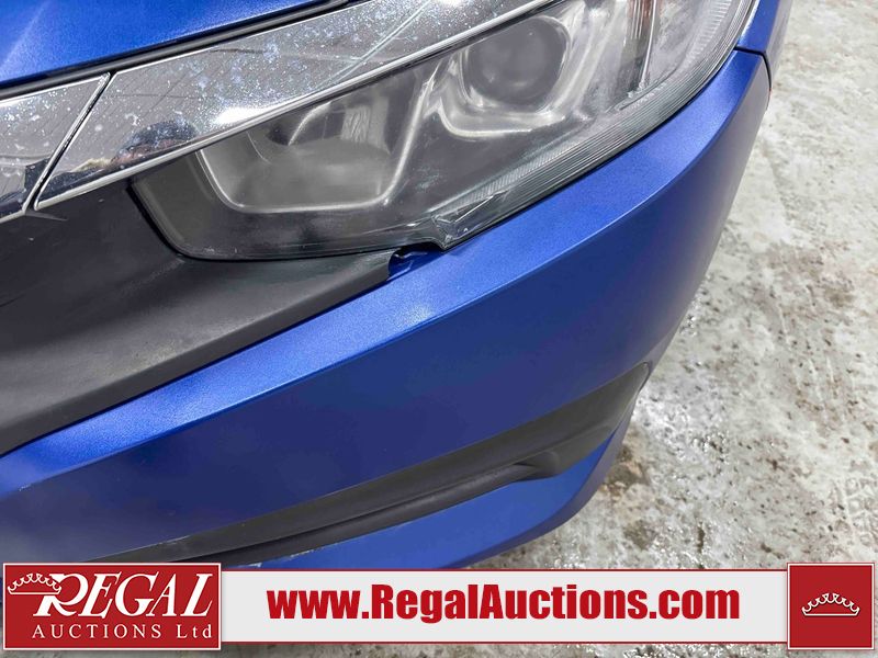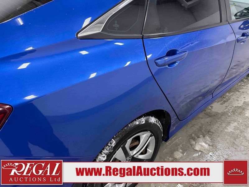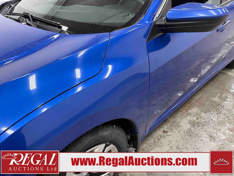 This 2017 HONDA CIVIC LS 4D SEDAN is powered by a 2.0 liter 4-cylinder gasoline engine and an automatic transmission. The car has seats for 5 people. The mileage is average considering the car's age. The vehicle has high-value options including a backup camera. The body looks to be in rough condition overall. The front bumper has been repainted poorly. The front bumper is broken. There is a fair amount of hail on the hood and trunk lid. There is minor rust on the roof. There is minor hail on the roof, left rear fender, and right rear fender. There is incidental dent damage on the right rear door. There are chips in many areas around the body. There are scratches in many areas around the body. The interior looks to be in good condition overall. The windshield is cracked. All of the tires have lots of tread remaining. This car is being sold by an automotive broker. The vehicle will be sold with the following declarations: Claims Total $5000 - $9999 (See Footnote 1) and Hail Damage (See Footnote 2). Footnotes: 1) The vehicle's total recorded insurance claims history is between $5,000 - $9,999. This is the amount of money that was paid out by an insurance company for repairs to cover claims against the vehicle's insurance policy. This information is provided by CarFax. 2) This vehicle shows signs of damage from a hail storm. Hail damage is not always clearly visible in photographs. Regal Auctions Ltd. makes no guarantee or warranty, either express or implied, with respect to the data provided in this report. The information has been provided from the consignor and from sources generally believed to be reliable, however the accuracy of this information cannot be guaranteed by Regal Auctions.