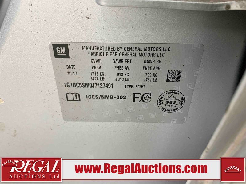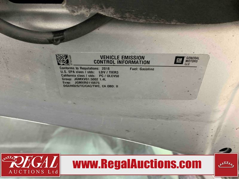 This 2018 CHEVROLET CRUZE 4D SEDAN is powered by a 4-cylinder gasoline engine and an automatic transmission. The car has seats for 5 people. The car has high mileage for its age. The vehicle has high-value options including power seats and a backup camera. The Tire Pressure light is on. The body looks to be in fair condition overall. There are minor chips on the front bumper and rear bumper. There are slight scratches on the front bumper, hood, roof, left front fender, left front door, left rear door, left rear fender, rear bumper, trunk lid, right rear fender, right rear door, right front door, and right front fender. There are very minor chips in many areas around the body. The interior looks to be in good condition overall. The windshield looks to be in good condition. All of the tires have lots of tread remaining. This car is being sold by an automotive broker. The vehicle will be sold with the following declarations: Out of Province (See Footnote 1), Out of Province - AB OVERRIDE (See Footnote 2), and Out of Province - ON (See Footnote 3). Footnotes: 1) The vehicle's last jurisdiction of registration is not Alberta. The purchaser must have the vehicle undergo and pass an Out of Province inspection before it can be registered in Alberta. 2) Out of province inspection for registering the vehicle in Alberta has been completed. 3) The vehicle's last registered jurisdiction is Ontario. The purchaser must have the vehicle undergo and pass an Out of Province inspection before it can be registered in Alberta. Regal Auctions Ltd. makes no guarantee or warranty, either express or implied, with respect to the data provided in this report. The information has been provided from the consignor and from sources generally believed to be reliable, however the accuracy of this information cannot be guaranteed by Regal Auctions.