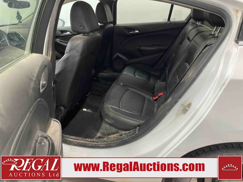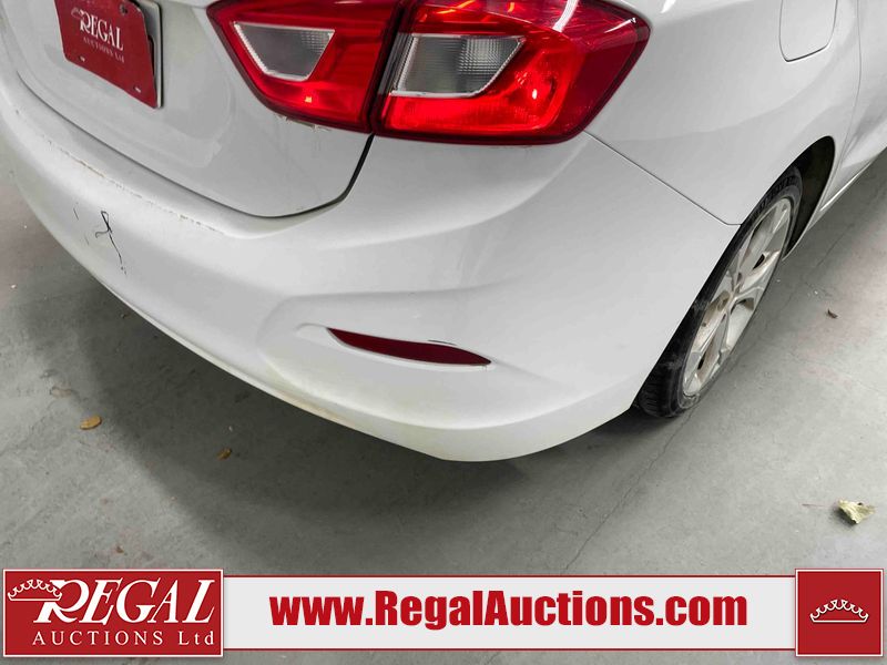 This 2018 CHEVROLET CRUZE PREMIER 4D SEDAN FWD 1.4L is powered by a turbocharged 4 cylinder gasoline engine and an automatic transmission. The car has seats for 5 people. The car has high mileage for its age. The vehicle has high value options including leather upholstery, power seats, heated seats, and a backup camera. The Tire Pressure and Check Engine lights are on. The body looks to be in rough condition overall. There is considerable dent damage on the hood, left front fender, and right front fender. There are considerable scratches on the rear bumper. There is a fair amount of paint peeling on the front bumper, left front fender, and right rear fender. There are noteworthy chips on the front bumper and grille. The fascia is broken on the front bumper. There is moderate rust on the right front fender. There are minor scratches on the front bumper, hood, roof, left front fender, left front door, left rear door, left rear fender, trunk lid, right rear fender, right rear door, right front door, and right front fender. The front bumper has parts missing. There are minor chips on the hood, roof, left front fender, left front door, left rear door, left rear fender, rear bumper, right rear fender, right rear door, right front door, and right front fender. There is rust on the hood. There is dent damage on the left front door, left rear fender, trunk lid, right rear door, and right front door. There is paint peeling on the rear bumper and right front fender. There are very minor chips on the trunk lid. There is very minor dent damage on the right rear fender. The interior looks to be in fair condition overall. The dashboard, driver's seat, passenger seat, rear seats, and doors are worn. There is roof liner cigarette burns damage to the interior. The rear view mirror is broken. The driver side mirror housing is broken. The tires are all worn.