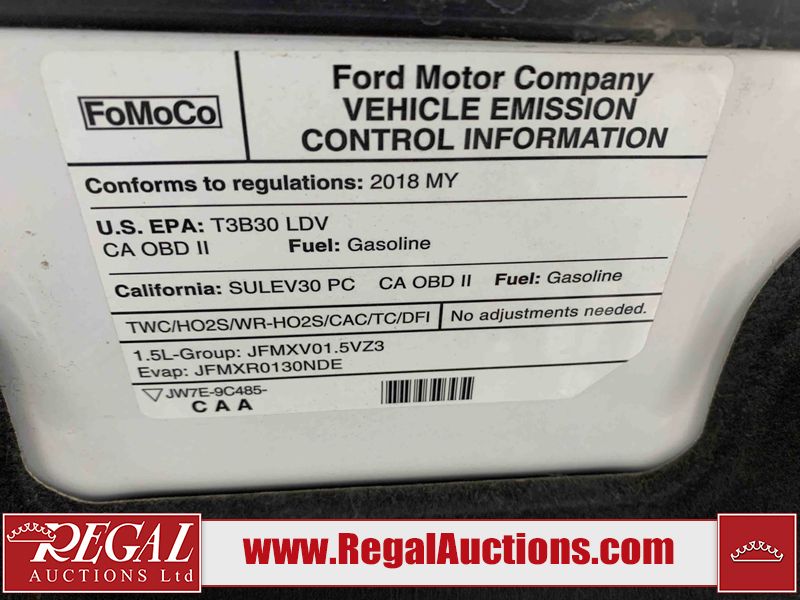 This 2018 FORD FUSION 4D SEDAN is powered by a 1.5L 4-cylinder gasoline engine and an automatic transmission. The car has seats for 5 people. The mileage is average considering the car's age. The vehicle has high-value options including power seats, heated seats, and a backup camera. The body looks to be in fair condition overall. There is some paint peeling on the front bumper. There are slight chips on the front bumper, left front fender, left front door, left rear door, and rear bumper. There are scratches on the rear bumper. There are very minor scratches in many areas around the body. There are very minor chips in many areas around the body. The interior looks to be in good condition overall. The driver's seat and passenger seat are dirty. The carpet is dirty. The windshield is chipped. All of the tires have lots of tread remaining. This car is being sold by an automotive broker. The vehicle will be sold with the following declarations: Claims Total $5000 - $9999 (See Footnote 1). Footnotes: 1) The vehicle's total recorded insurance claims history is between $5,000 - $9,999. This is the amount of money that was paid out by an insurance company for repairs to cover claims against the vehicle's insurance policy. This information is provided by CarFax. Regal Auctions Ltd. makes no guarantee or warranty, either express or implied, with respect to the data provided in this report. The information has been provided from the consignor and from sources generally believed to be reliable, however the accuracy of this information cannot be guaranteed by Regal Auctions.