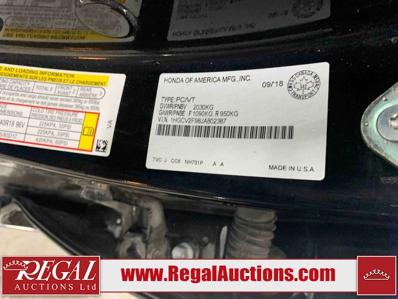 2018 HONDA ACCORD TOURING 4D SEDAN FWD 2.0L