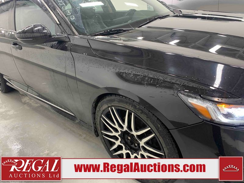 This 2018 HONDA ACCORD TOURING 4D SEDAN FWD 2.0L is powered by a turbocharged 4 cylinder gasoline engine and an automatic transmission. The car has seats for 5 people. The car has low mileage for its age. The vehicle has high value options including a sunroof, leather upholstery, power seats, heated seats, navigation, and a backup camera. The body looks to be in rough condition overall. The right rear door, right front door, and right front fender have been repainted poorly. There are chips on the grille, hood, roof, right rear fender, and right front fender. There are very minor chips in many areas around the body. There are very minor scratches in many areas around the body. There is very minor dent damage on the left front fender. The interior looks to be in good condition overall. The carpet is dirty. The windshield is cracked. All of the tires have lots of tread remaining. Aftermarket wheels are installed. The factory alloy set is missing.