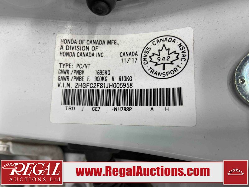 2018 HONDA CIVIC EX 4D SEDAN FWD 2.0L