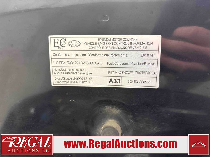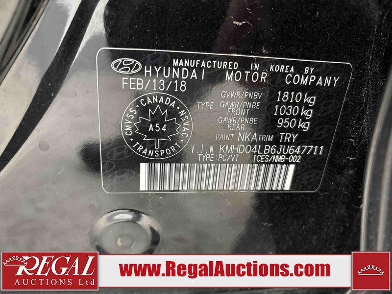 This 2018 HYUNDAI ELANTRA SPORT 4D SEDAN is powered by a turbocharged 1.6L 4-cylinder gasoline engine and a 6-speed manual transmission. The car has seats for 5 people. The mileage is average considering the car's age. The vehicle has high-value options including a sunroof, leather upholstery, heated seats, and a backup camera. The General light is on. The body looks to be in fair condition overall. The front bumper, rear bumper, and right rear fender have been repainted poorly. There are very minor chips in many areas around the body. There are very minor scratches in many areas around the body. There is very minor dent damage in some areas around the body. The interior looks to be in good condition overall. The windshield looks to be in good condition. The passenger side front tire and the driver's side rear tire are both worn. The other tires have lots of tread remaining. This car is being sold by an automotive broker. Regal Auctions Ltd. makes no guarantee or warranty, either express or implied, with respect to the data provided in this report. The information has been provided from the consignor and from sources generally believed to be reliable, however the accuracy of this information cannot be guaranteed by Regal Auctions.