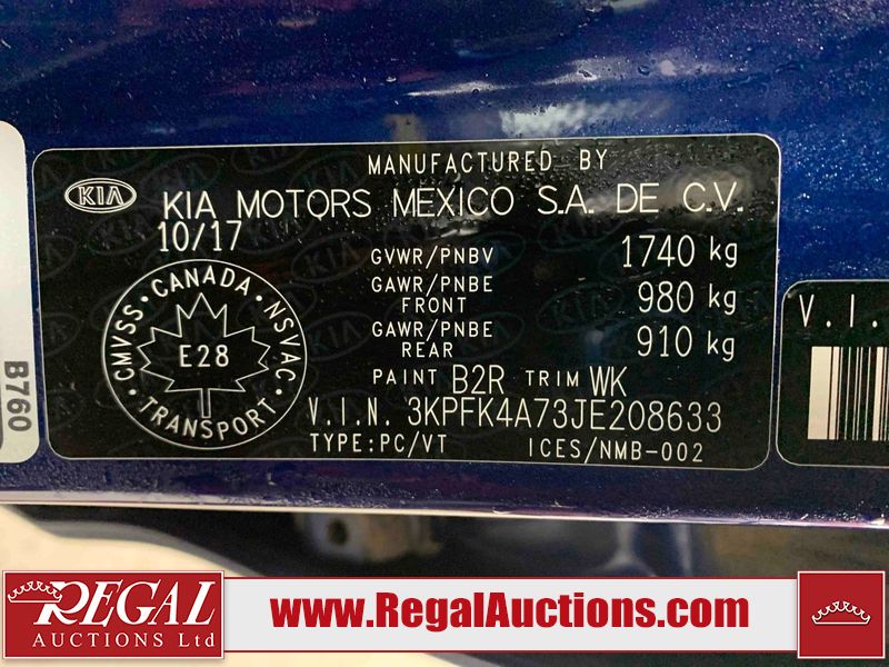 This 2018 KIA FORTE 4D SEDAN is powered by a 2.0L 4 cylinder gasoline engine and a 6 speed manual transmission. The car has seats for 5 people. The car has low mileage for its age. The body looks to be in rough condition overall. The front bumper is broken. There is substantial dent damage on the right front door. There are noteworthy scratches on the right front door. There are chips on the hood. There are scratches on the hood, left front door, left rear door, rear bumper, trunk lid, right rear fender, right rear door, and right front fender. There is minor dent damage on the left rear fender, trunk lid, and right rear door. There is incidental rust on the right rear fender. There are very minor chips in a few areas around the body. There are very minor scratches on the left rear fender. The tail lights are broken. The interior looks to be in good condition overall. The windshield looks to be in good condition. The passenger side front tire and the driver's side rear tire are both nearly bald and should be replaced. The driver's side front tire is worn. This car is being sold by a franchise dealership. The vehicle will be sold with the following declarations: Dealership Trade-In (See Footnote 1) and Out of Province - BC (See Footnote 2). Footnotes: 1) This vehicle is being sold on behalf of a franchise dealership. Franchise Dealerships are automotive sales companies who are directly connected to an automotive manufacturer like Ford, Tesla, Honda, BMW, or similar. 2) The vehicle's last registered jurisdiction is British Columbia. The purchaser must have the vehicle undergo and pass an Out of Province inspection before it can be registered in Alberta. Regal Auctions Ltd. makes no guarantee or warranty, either express or implied, with respect to the data provided in this report. The information has been provided from the consignor and from sources generally believed to be reliable, however the accuracy of this information cannot be guaranteed by Regal Auctions.