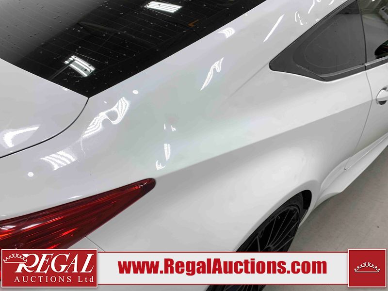 This 2018 LEXUS RC 350 F SPORT 2D COUPE AWD 3.5L is powered by a 6 cylinder gasoline engine and an automatic transmission. It is equipped with four wheel drive. The car has seats for 4 people. The car has low mileage for its age. The vehicle has high value options including a sunroof, leather upholstery, power seats, heated seats, navigation, and a backup camera. The body looks to be in rough condition overall. There is very bad hail on the hood, roof, trunk lid, right rear fender, right front door, and right front fender. There are minimal chips on the grille. There are scratches on the left rear fender, rear bumper, and right front door. There is dent damage on the left rear fender and right front door. There are very minor chips in many areas around the body. There are very minor scratches in many areas around the body. There is very minor dent damage in a few areas around the body. The interior looks to be in good condition overall. The carpet is dirty. The passenger side mirror housing is broken. The windshield is chipped. All of the tires have lots of tread remaining. Aftermarket alloy rims have been mounted, factory alloy rims are missing. The exhaust has been modified and is louder. Aftermarket lowered suspension has been installed.