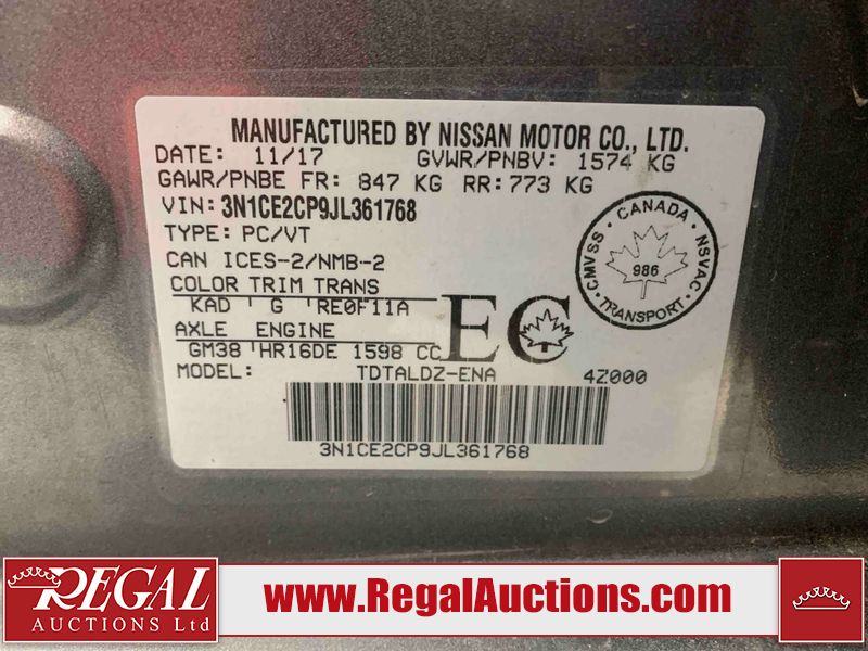 2018 NISSAN VERSA NOTE SV 4D HATCHBACK