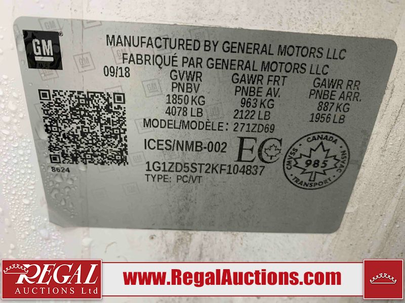 2019 CHEVROLET MALIBU LT 4D SEDAN 1.5L