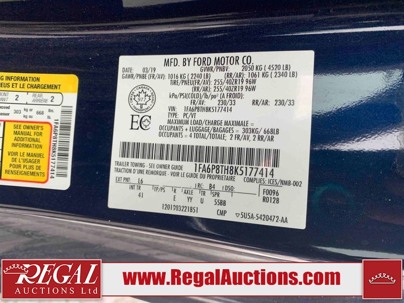 This 2019 FORD MUSTANG ECO PREMIUM 2D COUPE RWD 2.3L is powered by a turbocharged 4 cylinder gasoline engine and an automatic transmission. The car has seats for 5 people. The vehicle has high value options including leather upholstery, power seats, heated seats, and a backup camera. The unit will have to be towed through the auction as it does not have keys. Its engine, transmission, drive line and odometer cannot be confirmed. This unit is dirty, not all damages can be determined. The body looks to be in good condition overall. There are very minor chips in many areas around the body. There are very minor scratches in many areas around the body. The interior looks to be in fair condition overall. The dashboard, driver's seat, passenger seat, rear seats, and doors are dirty. The windshield looks to be in good condition. All of the tires are nearly bald and should be replaced.