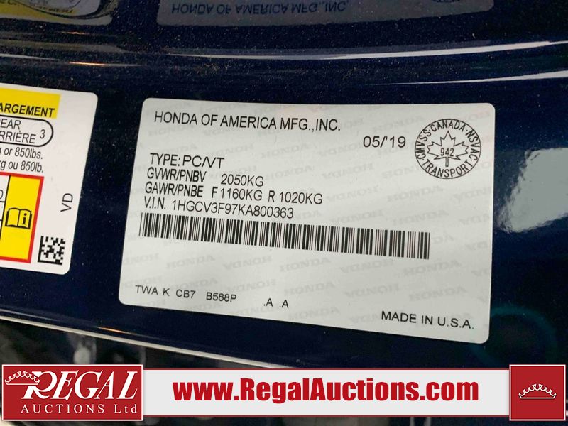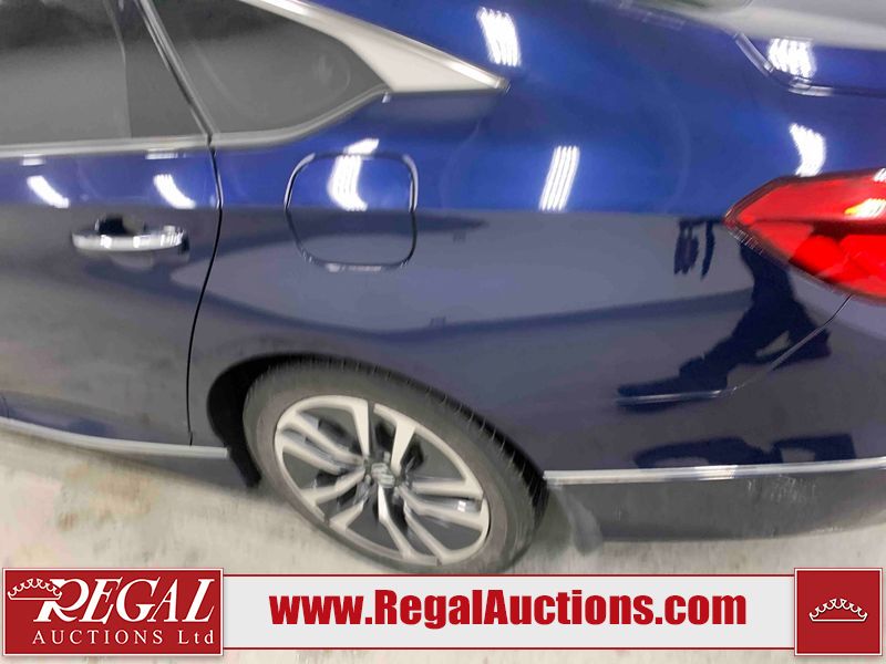 This 2019 HONDA ACCORD HYBRID TOURING 4D UTILITY FWD 2.0L is powered by a 4 cylinder hybrid engine and an automatic transmission. The car has seats for 5 people. The mileage is average considering the car's age. The vehicle has high value options including a sunroof, leather upholstery, power seats, heated seats, navigation, and a backup camera. The body looks to be in good condition overall. There are chips on the hood, left front fender, trunk lid, right rear door, and right front fender. There are very minor chips in many areas around the body. There are very minor scratches in many areas around the body. The interior looks to be in fair condition overall. The doors are dirty. The carpet is dirty. The windshield is chipped. The tires are all worn. The passenger side rear tire is nearly bald and should be replaced.