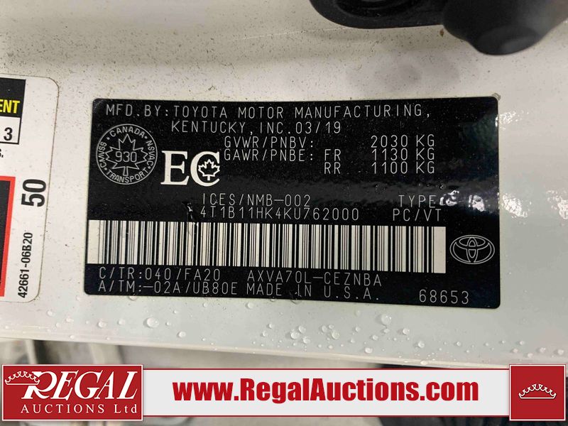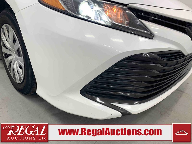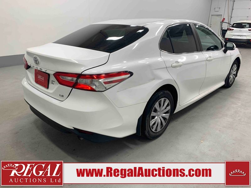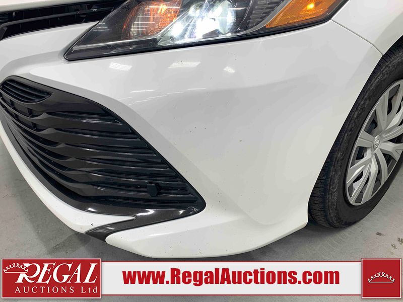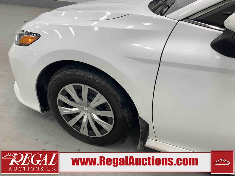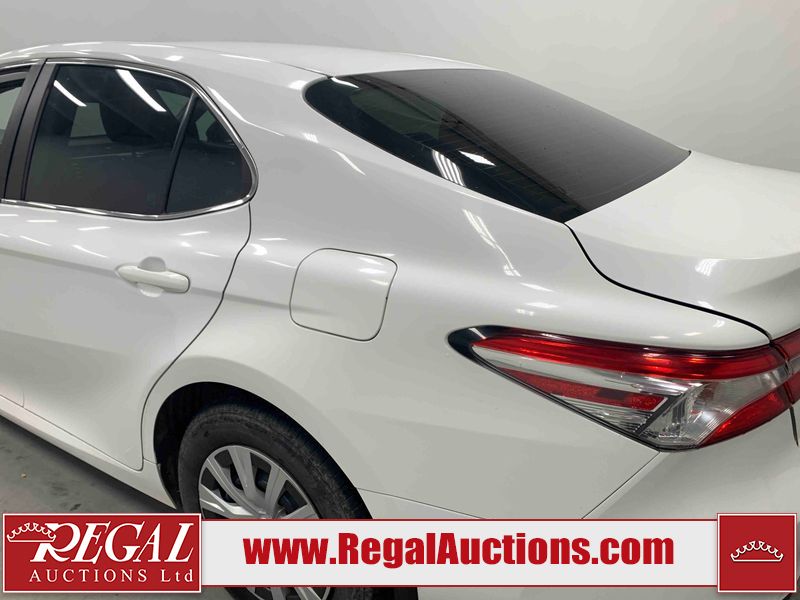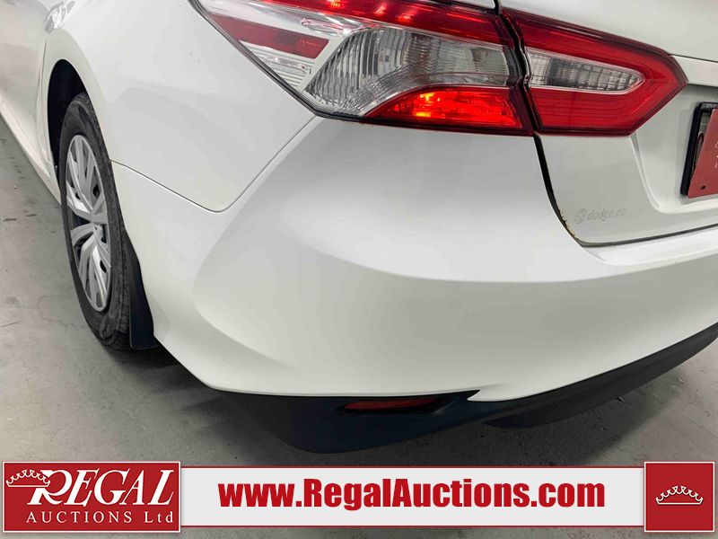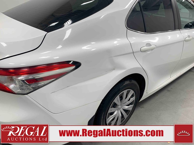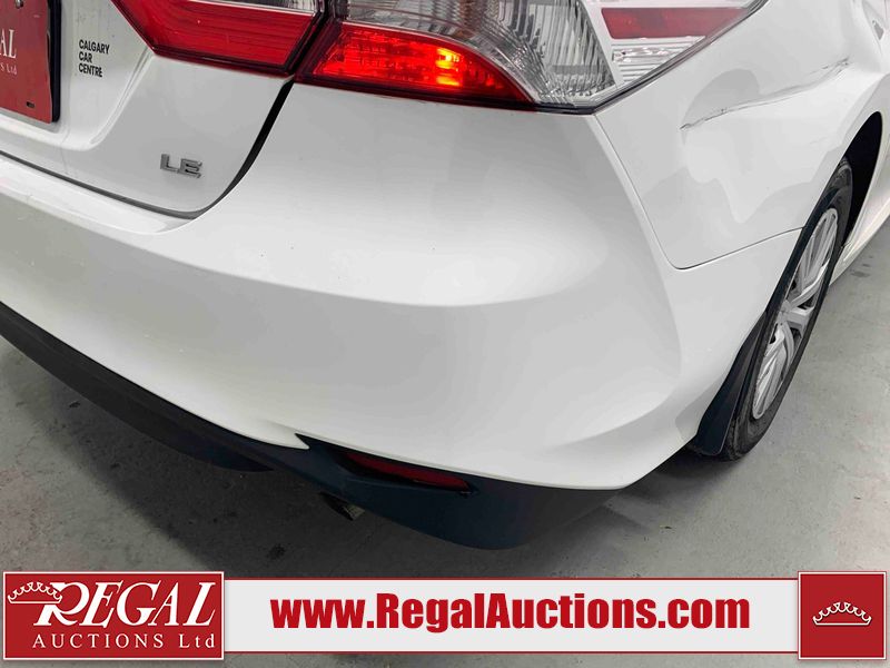 This 2019 TOYOTA CAMRY LE 4D SEDAN FWD 2.5L is powered by a 4 cylinder gasoline engine and an automatic transmission. The car has seats for 5 people. The mileage is average considering the car's age. The vehicle has high value options including a backup camera. The body looks to be in fair condition overall. There is extensive dent damage on the right rear fender. There are chips on the front bumper, grille, hood, roof, left front fender, left front door, left rear door, rear bumper, and right rear door. There are scratches on the left front door and right rear fender. There is paint peeling on the trunk lid. There are very minor scratches in many areas around the body. There are very minor chips in many areas around the body. The interior looks to be in fair condition overall. The driver's seat and passenger seat are stained. The dashboard, rear seats, and doors are dirty. The carpet is dirty. The windshield is cracked. The front tires are both worn. The rear tires both have lots of tread remaining.