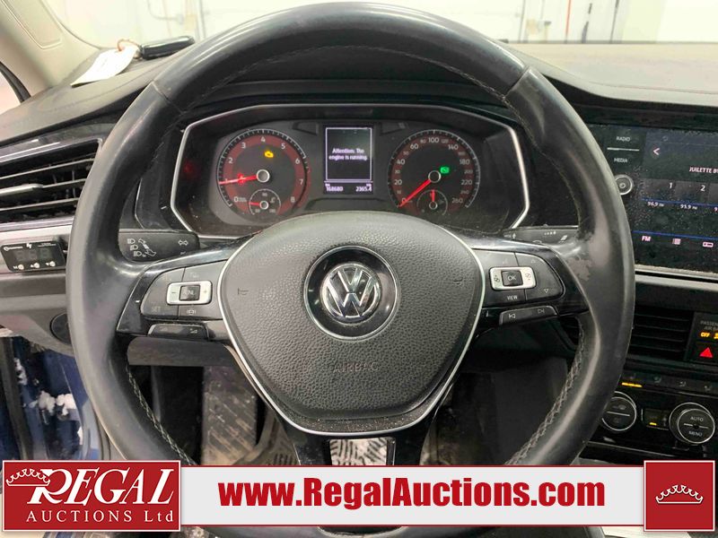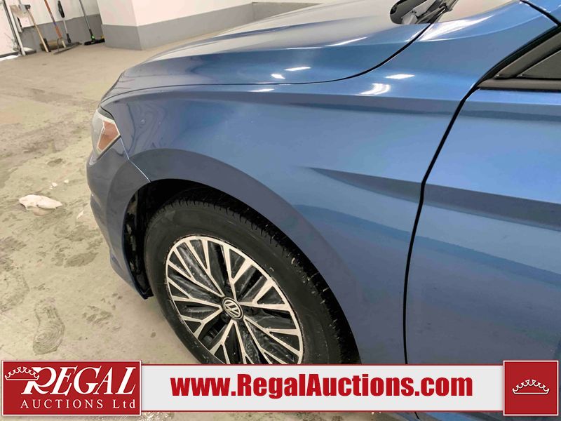 This 2019 VOLKSWAGEN JETTA HIGHLINE 4D SEDAN FWD 1.4L is powered by a turbocharged 4 cylinder gasoline engine and an automatic transmission. The car has seats for 5 people. The mileage is average considering the car's age. The vehicle has high value options including a sunroof, leather upholstery, heated seats, and a backup camera. The Check Engine light is on. The unit it has an aftermarket air intake, in factory air intake is missing. There is a belt squealing sound coming from the engine. The body looks to be in fair condition overall. There is noteworthy paint peeling on the front bumper and rear bumper. There are minimal scratches on the front bumper, hood, left front fender, and rear bumper. There are incidental chips on the front bumper, hood, left front fender, and rear bumper. The left front door has parts missing. There are very minor chips in many areas around the body. There is very minor dent damage in a few areas around the body. There are very minor scratches in many areas around the body. The interior looks to be in good condition overall. The windshield looks to be in good condition. The front tires are both worn. The rear tires both have lots of tread remaining.