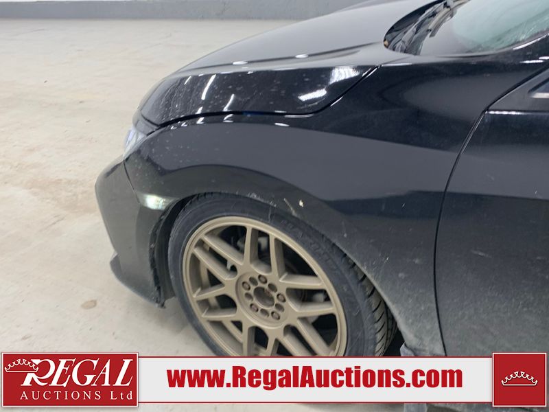 This vehicle has a 1.5 liter 4-cylinder gasoline engine and a 5-speed manual transmission. The mileage is average. The vehicle has high-value options, including power seats, heated seats, and a backup camera. The ACC, Traction, and Collision lights are on. The battery is dead and may require replacement. The body is in good condition. There are chips on the left rear door and the right rear door. There are minimal scratches on the rear bumper. The interior is in good condition. The windshield is damaged. All of the tires have lots of tread remaining.