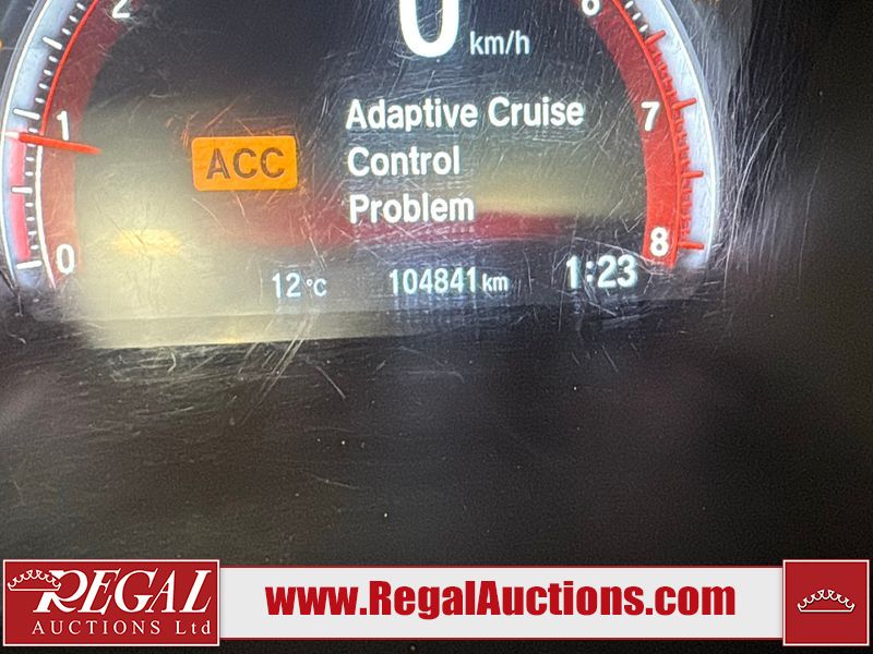 This vehicle has a turbocharged 4-cylinder gasoline engine and an automatic transmission. It has low mileage. The vehicle has high value options, including a sunroof, leather upholstery, power seats, heated seats, navigation, and a backup camera. The Adaptive Cruise Control, General, and Tire Pressure lights are on. The body is in fair condition. The front bumper is broken. The grille is cracked. There is slight rust on the roof and the right front door. There is slight dent damage on the left front fender and right front door. The interior is in good condition. The windshield cracked. The rear tires are okay. The front tires have lots of tread remaining.