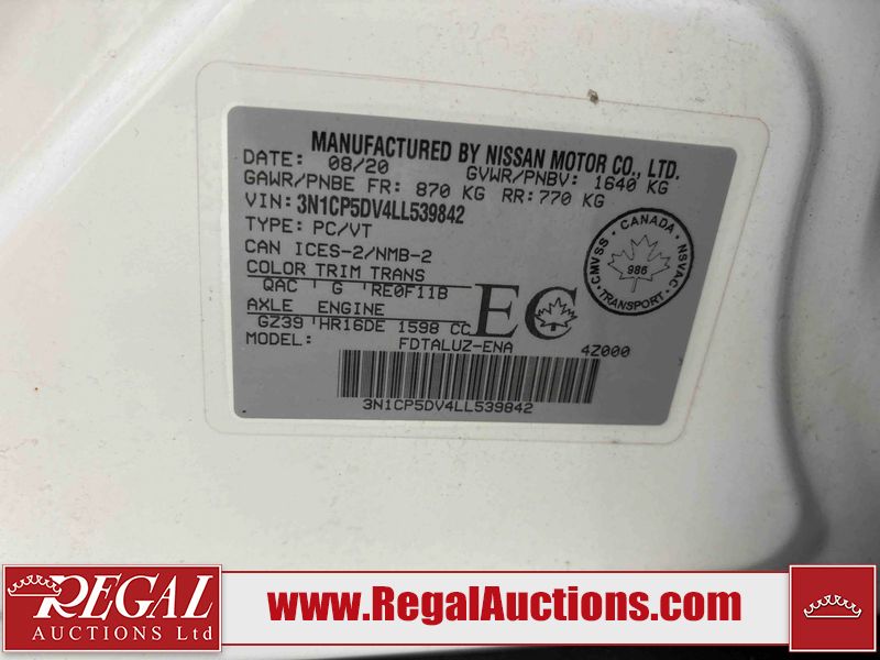 This 2020 NISSAN KICKS 4D HATCHBACK is powered by a 1.6 liter 4-cylinder gasoline engine and an automatic transmission. The car has seats for 5 people. The mileage is average considering the car's age. The vehicle has high-value options, including leather upholstery and a backup camera. The body looks to be in fair condition overall. There is incidental rust on the roof. There are chips in many areas around the body. There are scratches in many areas around the body. The interior looks to be in good condition overall. The windshield is chipped. The front tires are both worn. The rear tires both have lots of tread remaining. This car is being sold by an automotive broker. The vehicle will be sold with the following declarations: Claims Total $5000 - $9999 (See Footnote 1). Footnotes: 1) The vehicle's total recorded insurance claims history is between $5,000 - $9,999. This is the amount of money that was paid out by an insurance company for repairs to cover claims against the vehicle's insurance policy. This information is provided by CarFax. Regal Auctions Ltd. makes no guarantee or warranty, either express or implied, with respect to the data provided in this report. The information has been provided from the consignor and from sources generally believed to be reliable, however the accuracy of this information cannot be guaranteed by Regal Auctions.