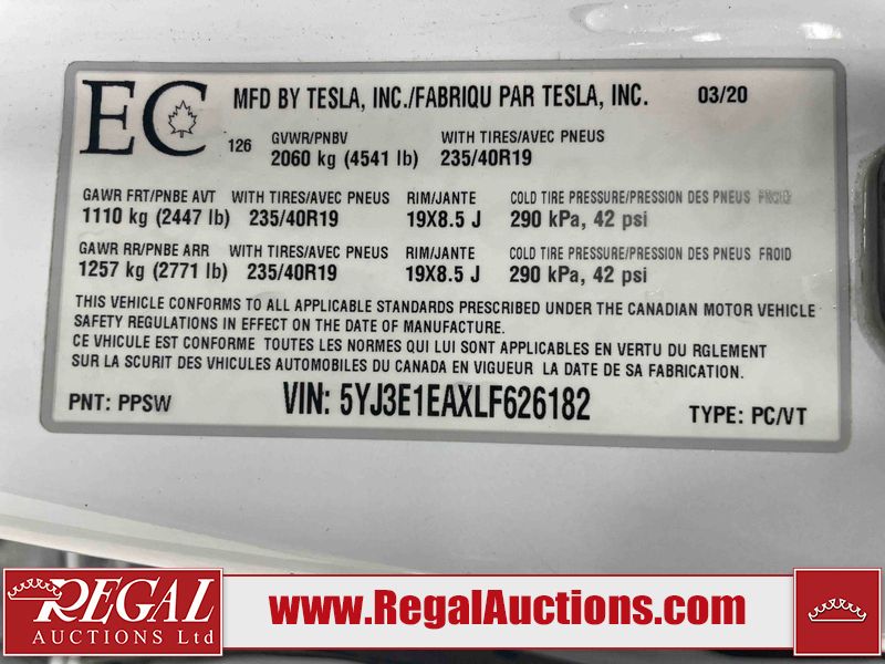 This 2020 TESLA MODEL 3 STANDARD RANGE PLUS 4D SEDAN RWD ELECTRIC is powered by an electric motor and an automatic transmission. The car has seats for 5 people. The car has low mileage for its age. The vehicle has high value options including a sunroof, leather upholstery, power seats, heated seats, navigation, and a backup camera. The wall charger is missing. The body looks to be in good condition overall. There are chips on the front bumper, grille, and right front fender. There are minor scratches on the front bumper, rear bumper, and right rear door. There are very minor chips in many areas around the body. There are very minor scratches in many areas around the body. The interior looks to be in fair condition overall. The driver's seat and passenger seat are worn. The carpet is dirty. The windshield is chipped. The tires are all worn.