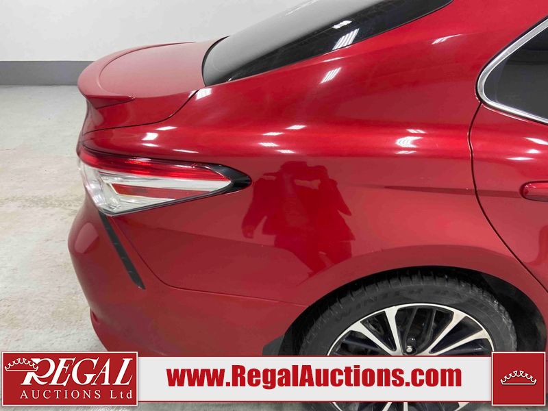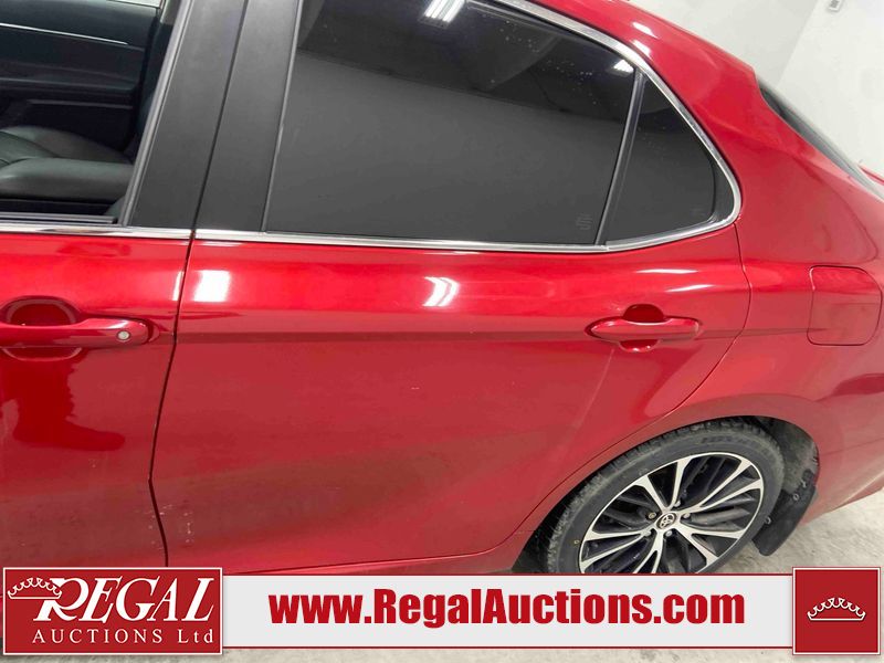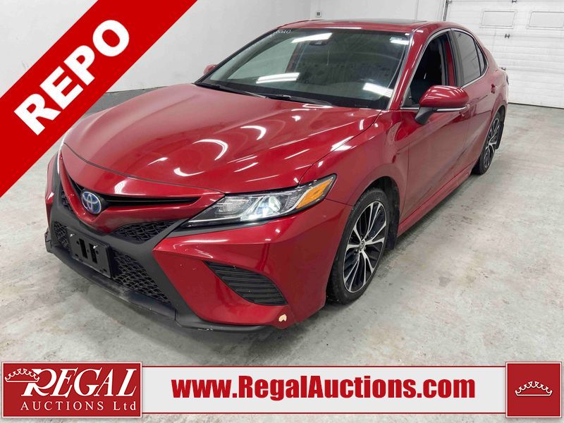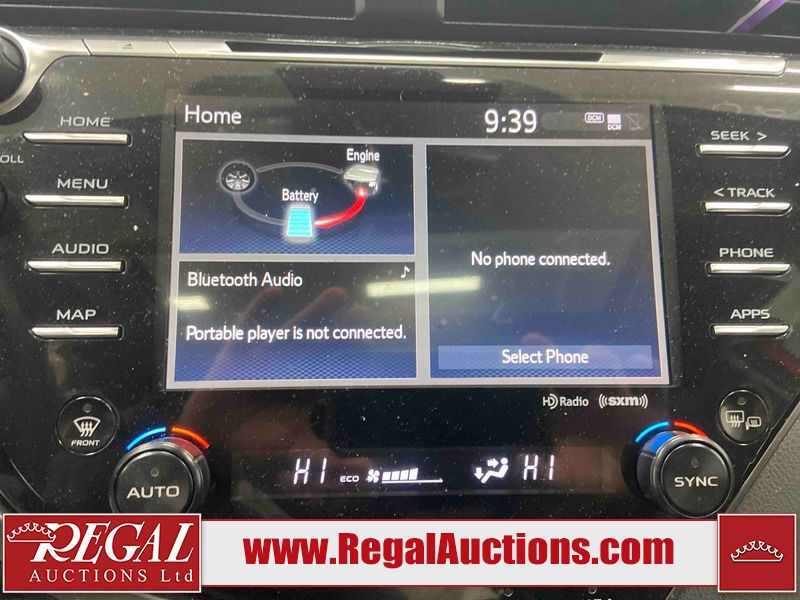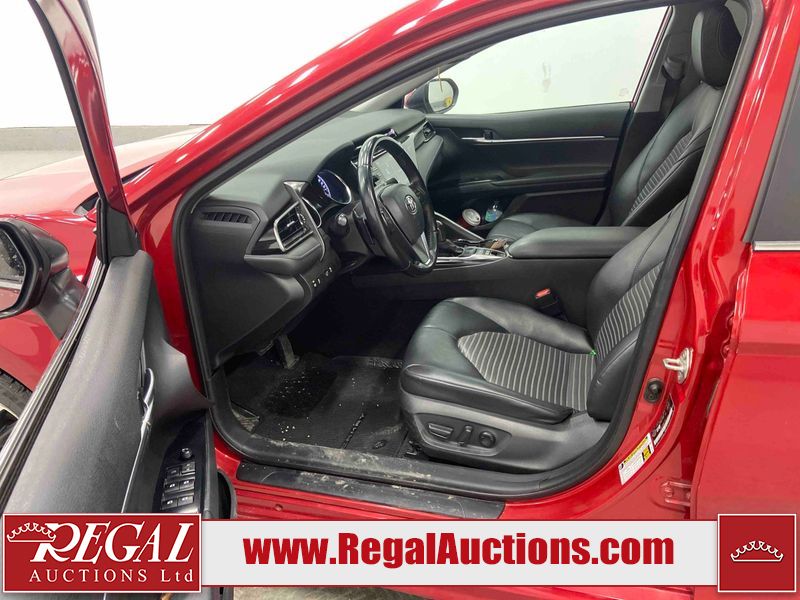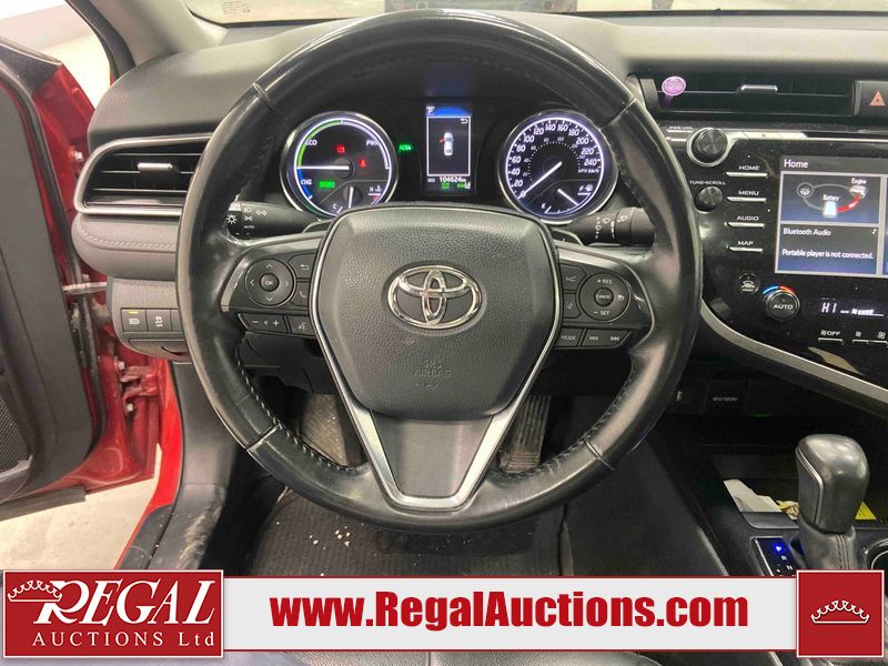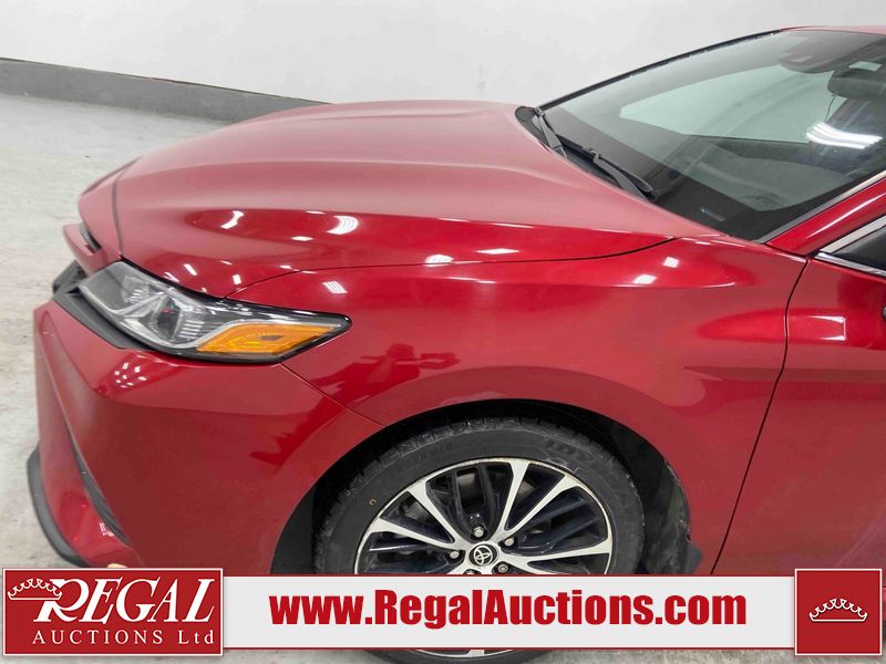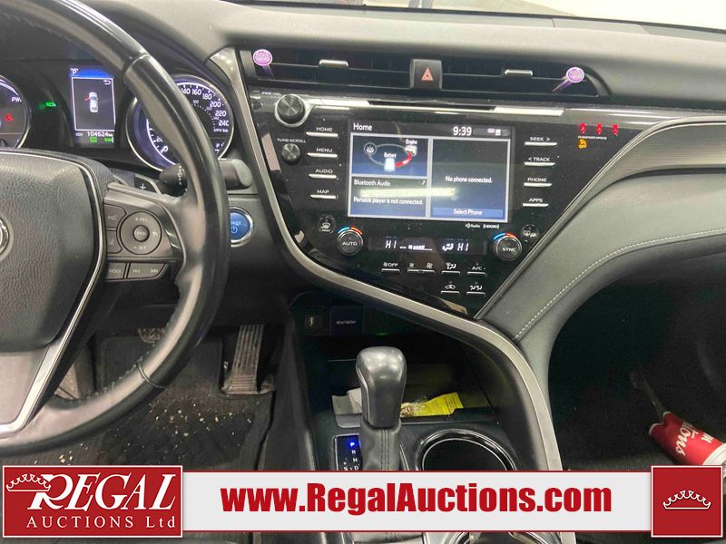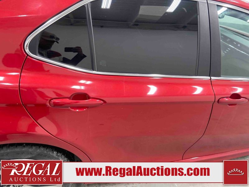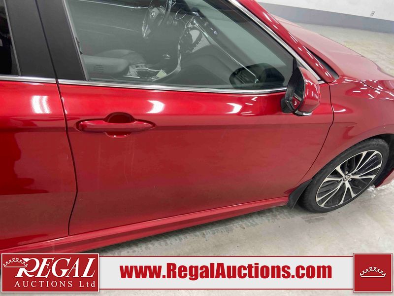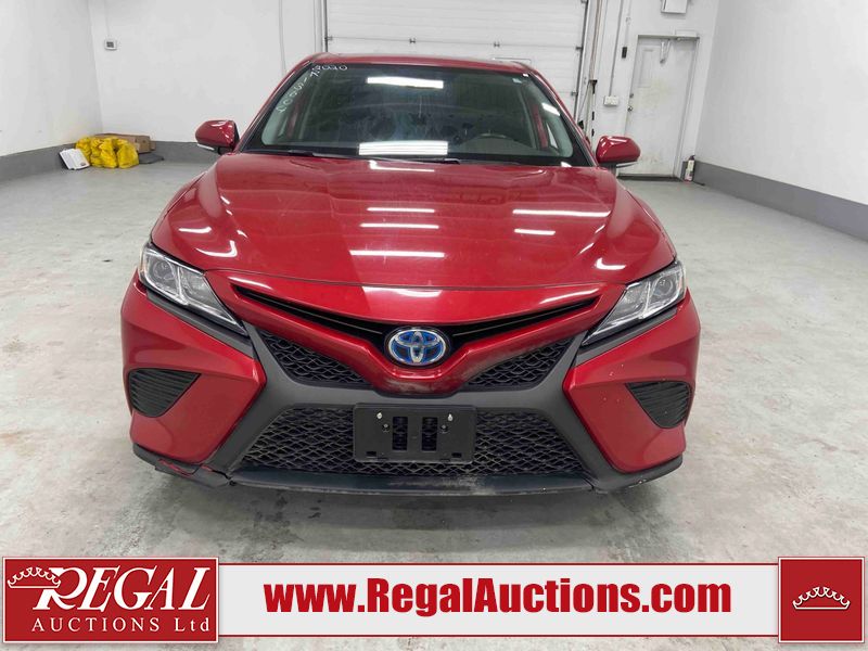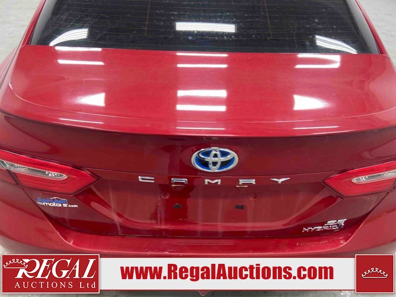 This 2020 TOYOTA CAMRY SE HYBRID 4D SEDAN FWD 2.5L is powered by a 2.5L 4 cylinder hybrid engine and an automatic transmission. The car has seats for 5 people. The car has low mileage for its age. The vehicle has high value options including a sunroof, leather upholstery, power seats, heated seats, and a backup camera. The body looks to be in fair condition overall. The fascia is cracked on the front bumper. There are chips on the front bumper, hood, left front fender, left front door, left rear door, left rear fender, rear bumper, right rear fender, right rear door, right front door, and right front fender. There are slight scratches on the left front door, left rear door, rear bumper, right rear fender, right rear door, and right front fender. There is dent damage on the right rear fender and right rear door. There are very minor scratches in many areas around the body. There are very minor chips in a few areas around the body. The interior looks to be in good condition overall. The carpet is dirty. The windshield is chipped. All of the tires have lots of tread remaining.