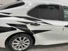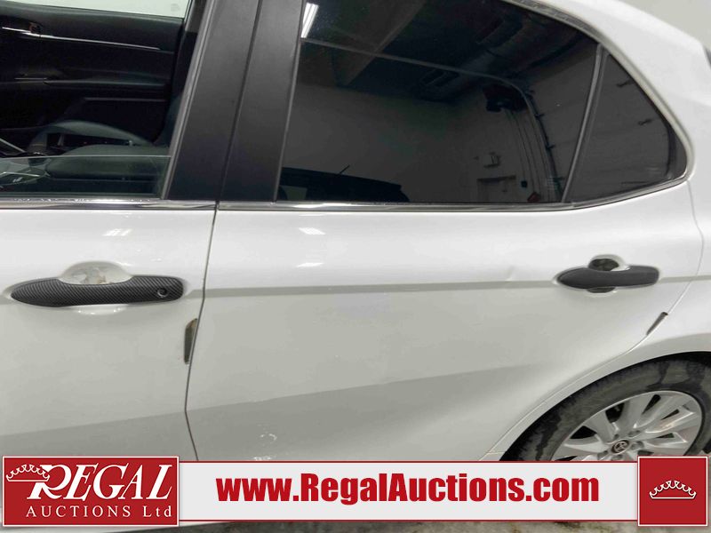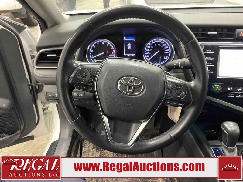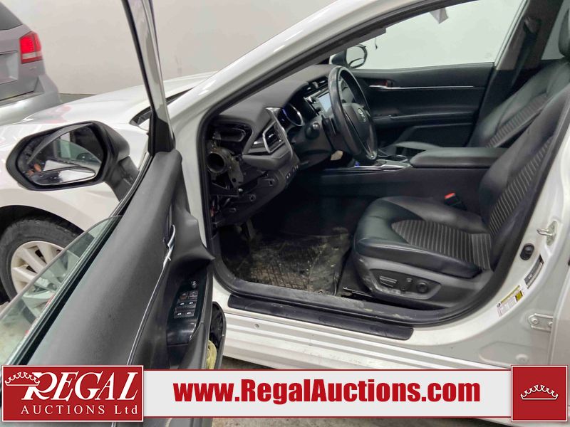 This 2020 TOYOTA CAMRY SE 4D SEDAN FWD 2.5L is powered by a 4 cylinder gasoline engine and an automatic transmission. The car has seats for 5 people. The car has high mileage for its age. The vehicle has high value options including leather upholstery, power seats, heated seats, and a backup camera. The body looks to be in fair condition overall. This unit has decals placed on some panels. There are chips on the front bumper, grille, hood, and roof. There are scratches on the front bumper. There is minor paint peeling on the grille and right rear door. There is dent damage on the left rear door and right front door. There are very minor scratches in many areas around the body. There are very minor chips in many areas around the body. The spoiler is cracked. The interior looks to be in fair condition overall. The dashboard is detached. The carpet is dirty. The upper left airbag panel is misaligned. The drivers side dash panel has been removed and is on the passenger seat. There is miscellaneous wiring coming from the roof liner. The windshield looks to be in good condition. All of the tires have lots of tread remaining.