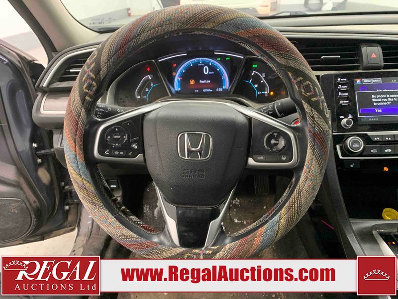 This 2021 HONDA CIVIC EX 4D SEDAN FWD 2.0L is powered by a turbocharged 4 cylinder gasoline engine and an automatic transmission. The car has seats for 5 people. The car has high mileage for its age. The vehicle has high value options including a sunroof, power seats, heated seats, and a backup camera. The body looks to be in fair condition overall. There are slight chips on the front bumper, hood, left front door, rear bumper, right rear door, and right front door. There are minimal scratches on the rear bumper and trunk lid. There are very minor scratches in many areas around the body. There are very minor chips in many areas around the body. The interior looks to be in fair condition overall. The dashboard, driver's seat, rear seats, and doors are dirty. The carpet is dirty. The windshield is chipped. All of the tires are nearly bald and should be replaced.