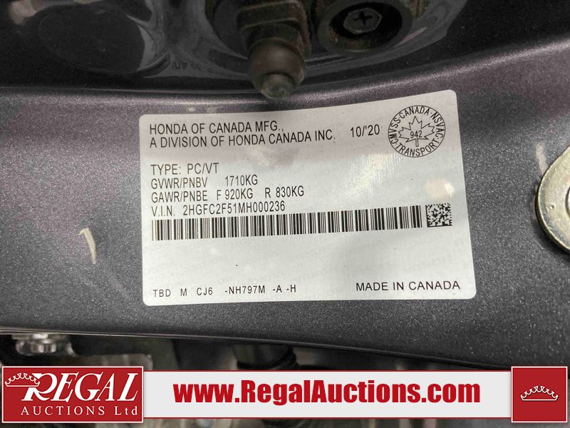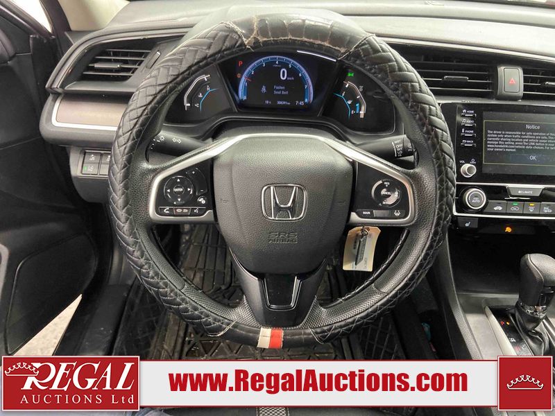 This 2021 HONDA CIVIC LX 4D SEDAN FWD 2.0L is powered by a 4 cylinder gasoline engine and an automatic transmission. The car has seats for 5 people. The car has high mileage for its age. The vehicle has high value options including leather upholstery, heated seats, and a backup camera. The body looks to be in good condition overall. There is incidental paint peeling on the front bumper. There are incidental chips on the front bumper and rear bumper. There are very minor scratches in many areas around the body. There are very minor chips in many areas around the body. There is very minor dent damage on the right rear fender. The interior looks to be in good condition overall. The carpet is dirty. The windshield is cracked. All of the tires have lots of tread remaining.
