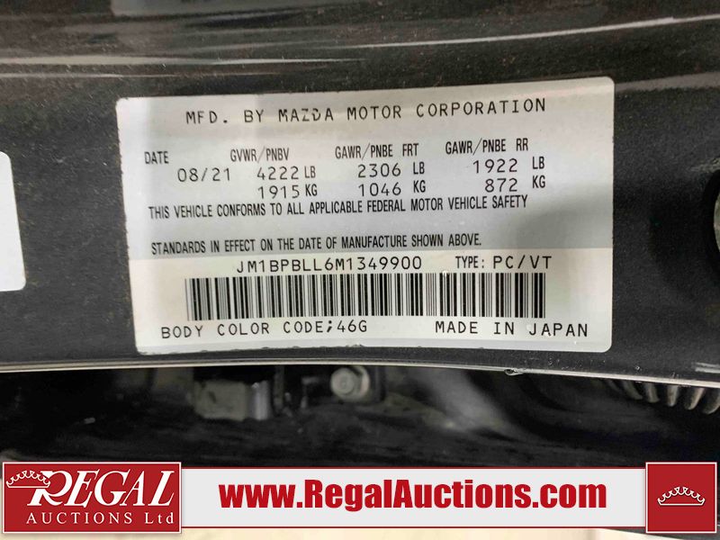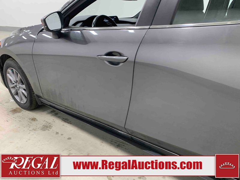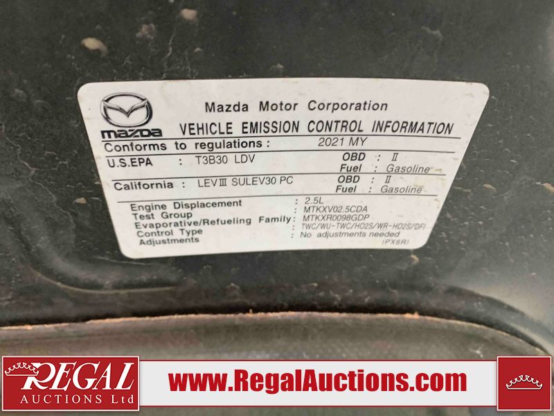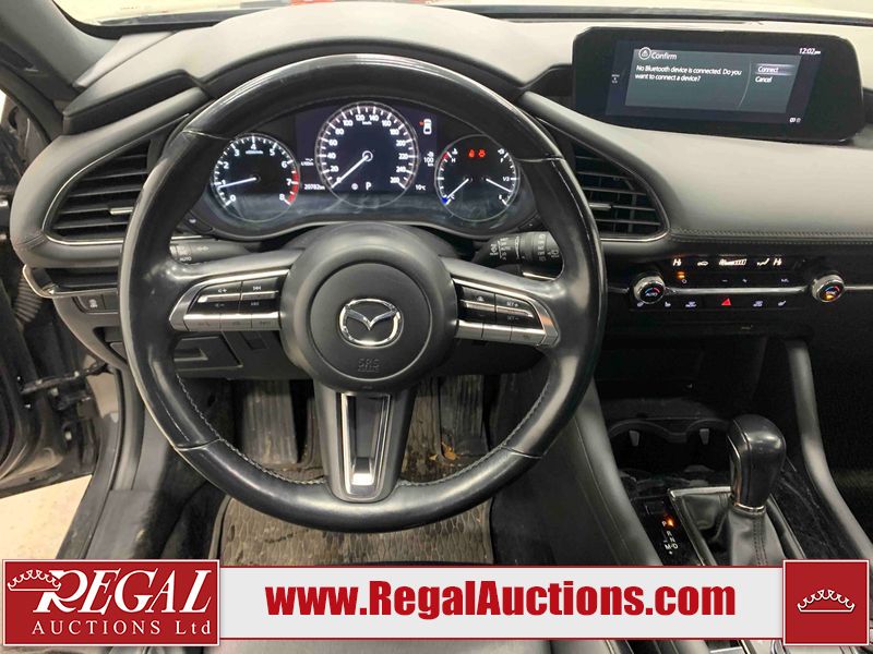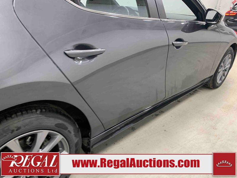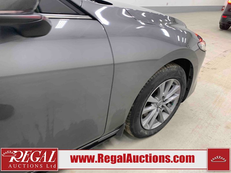 The odometer is showing 20,782Km however there is a factory dealer sticker on the door jam that notes the BCM was replaced at 67,588, total mileage is 88,370KM. This 2021 MAZDA MAZDA3 SPORT GS 4D HATCHBACK AWD 2.5L is powered by a 4 cylinder gasoline engine and an automatic transmission. It is equipped with four wheel drive. The car has seats for 5 people. The car has low mileage for its age. The vehicle has high value options including power seats, heated seats, navigation, and a backup camera. The body looks to be in good condition overall. There are minor chips on the rear bumper. There are incidental scratches on the rear bumper. There are very minor chips in many areas around the body. There are very minor scratches in many areas around the body. The interior looks to be in good condition overall. The carpet is dirty. The windshield is damaged. All of the tires have lots of tread remaining.
