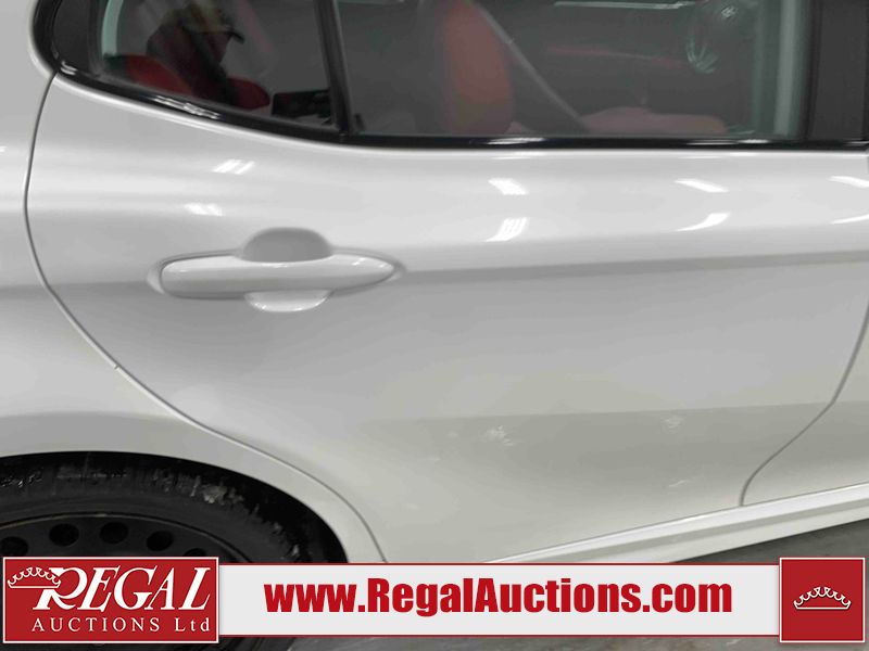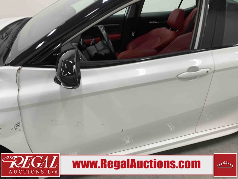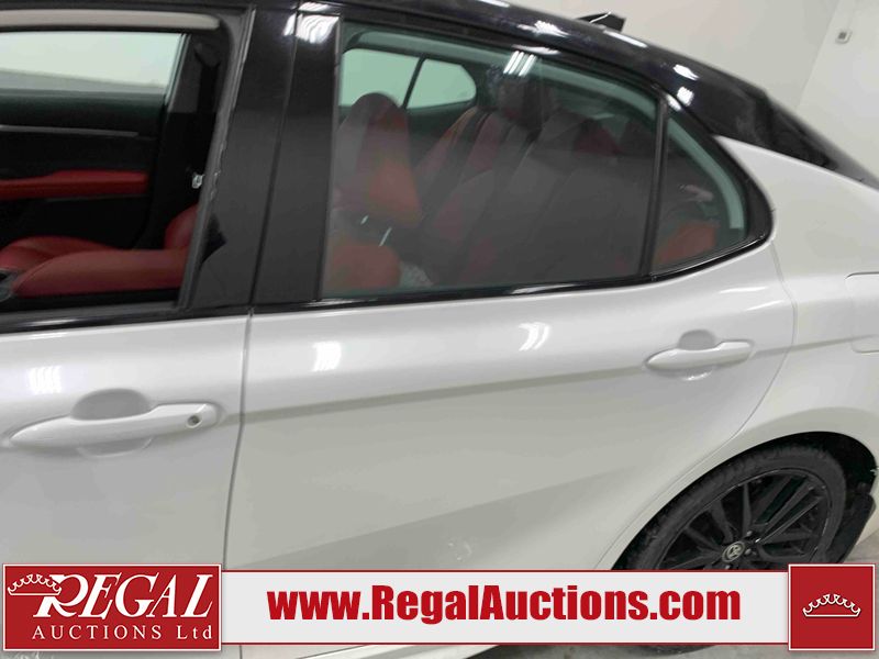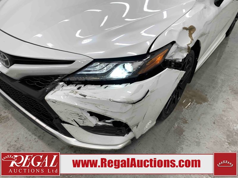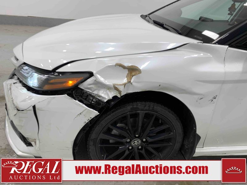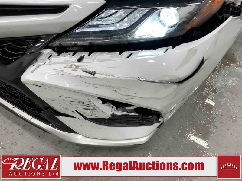 This 2021 TOYOTA CAMRY XSE 4D SEDAN AWD 2.5L is powered by a 4 cylinder gasoline engine and an automatic transmission. It is equipped with four wheel drive. The car has seats for 5 people. The mileage is average considering the car's age. The vehicle has high value options including a sunroof, leather upholstery, power seats, heated seats, and a backup camera. The body looks to be in fair condition overall. The front bumper and left front fender are broken. There are chips on the hood, left rear door, left rear fender, rear bumper, and right rear fender. There are scratches on the left front door. There is dent damage on the left rear fender. There are very minor chips in many areas around the body. There are very minor scratches in many areas around the body. The interior looks to be in good condition overall. The carpet is dirty. The windshield looks to be in good condition. The tires are all worn. The driver's side rear tire is nearly bald and should be replaced. The right rear wheel is a spare.