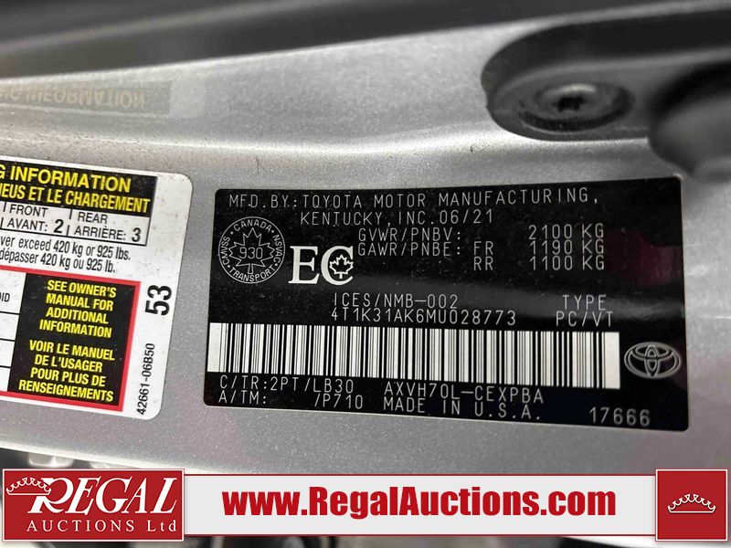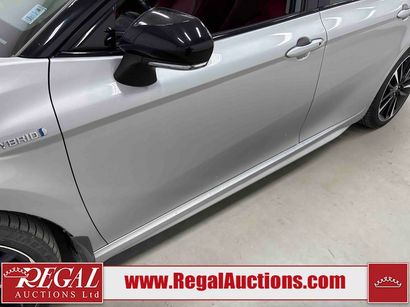 This 2021 TOYOTA CAMRY HYBRID XSE 4D SEDAN is powered by a 2.5 liter 4-cylinder hybrid engine and an automatic transmission. The car has seats for 5 people. The car has low mileage for its age. The vehicle has high-value options, including leather upholstery, power seats, and a backup camera. The Tire Pressure light is on. The body looks to be in good condition overall. There are scratches on the left front door. There are chips in many areas around the body. There are scratches in many areas around the body. The interior looks to be in good condition overall. The windshield is chipped. The driver's side front tire is nearly bald and should be replaced. The passenger side front tire is worn. Both rear tires have lots of tread remaining. This car is being sold by an automotive broker. The vehicle will be sold with the following declarations: Claims Total Above $20,000 (See Footnote 1). Footnotes: 1) The vehicle's total recorded insurance claims history is above $20,000. This is the amount of money that was paid out by an insurance company for repairs to cover claims against the vehicle's insurance policy. This information is provided by CarFax. Regal Auctions Ltd. makes no guarantee or warranty, either express or implied, with respect to the data provided in this report. The information has been provided from the consignor and from sources generally believed to be reliable, however the accuracy of this information cannot be guaranteed by Regal Auctions.