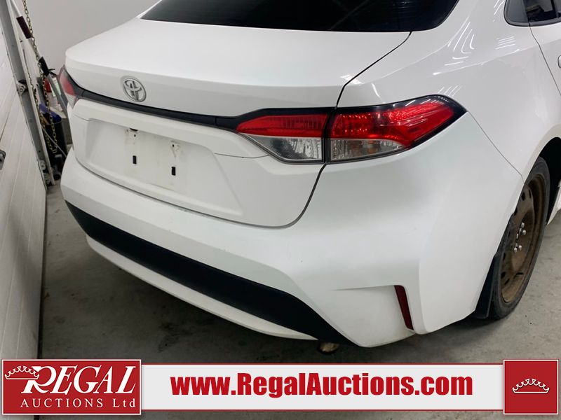 This 2021 TOYOTA COROLLA 4D SEDAN 1.8L is powered by a 4 cylinder gasoline engine and an automatic transmission. The car has seats for 5 people. The car has high mileage for its age. The vehicle has high value options including a sunroof and a backup camera. The body looks to be in rough condition overall. The front bumper is cracked. The front bumper has been repainted poorly. There is very bad dent damage on the right front fender. The grille is cracked. There is moderate hail on the hood and roof. There are incidental scratches on the front bumper, hood, right rear door, right front door, and right front fender. There is minimal dent damage on the hood, left rear fender, and right rear fender. There are minimal chips on the left front fender. There are very minor chips in many areas around the body. There are very minor scratches in many areas around the body. There is very minor dent damage in a few areas around the body. The interior looks to be in good condition overall. The windshield is chipped. Both rear tires and the passenger side front tire are worn. The driver's side front tire has lots of tread remaining. The factory hubcaps are missing.