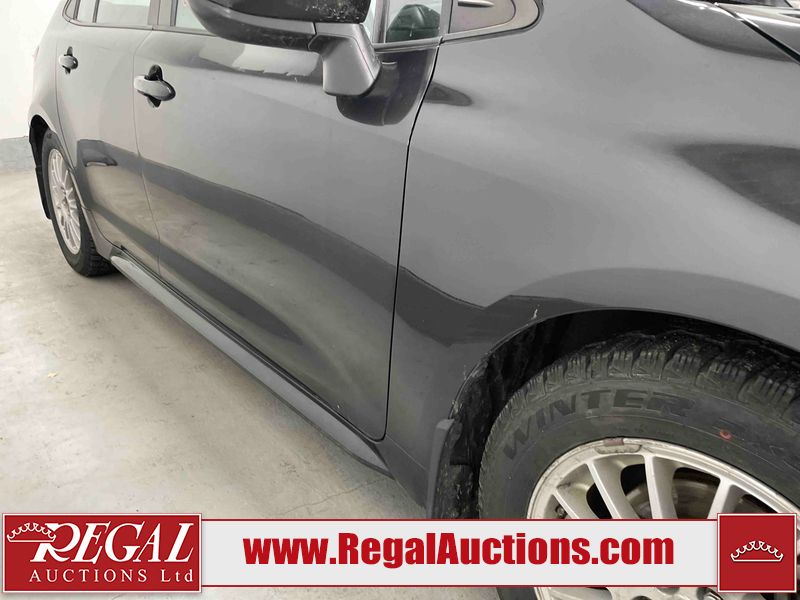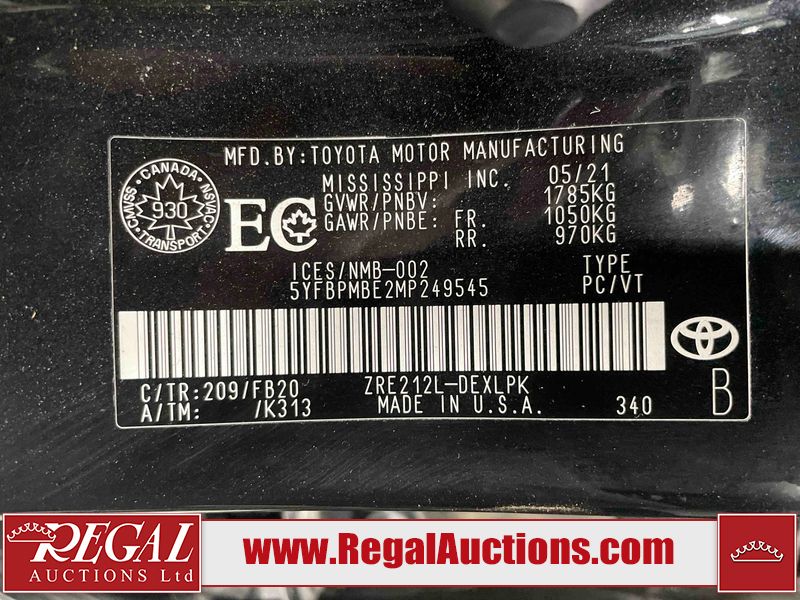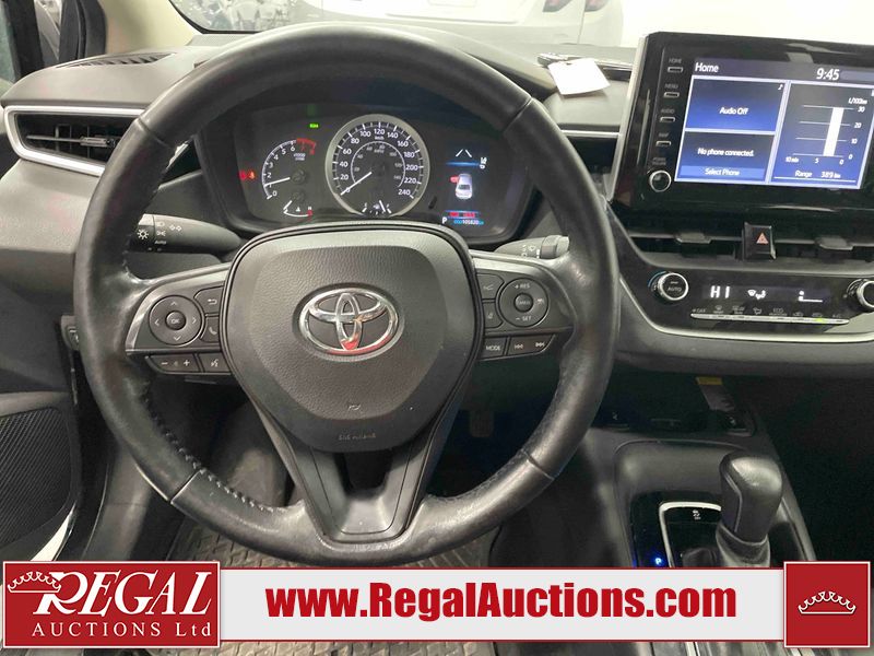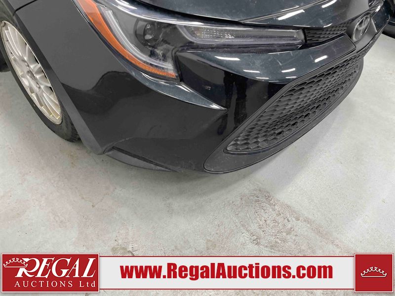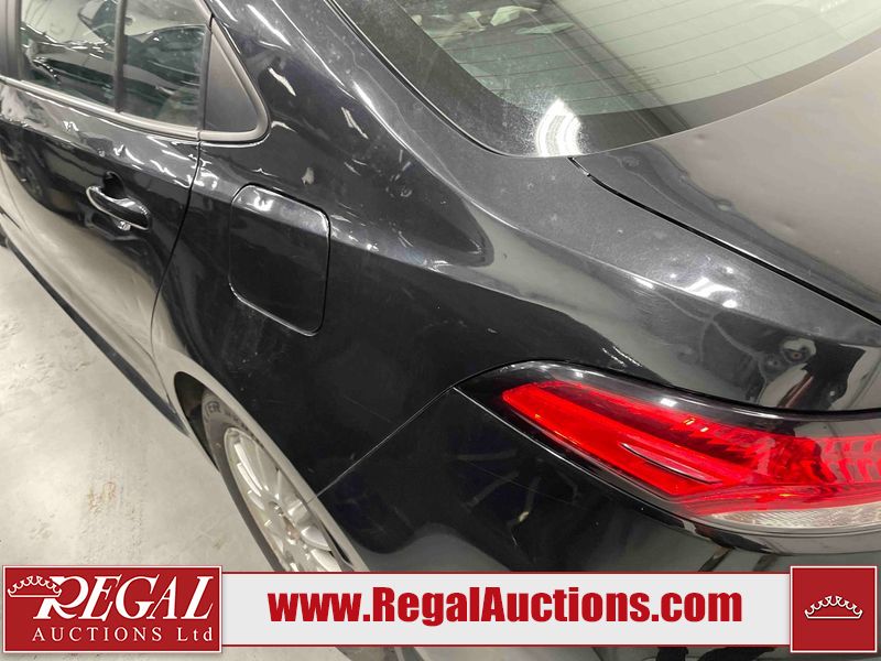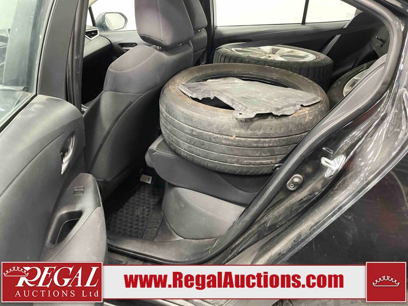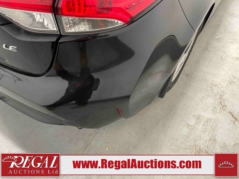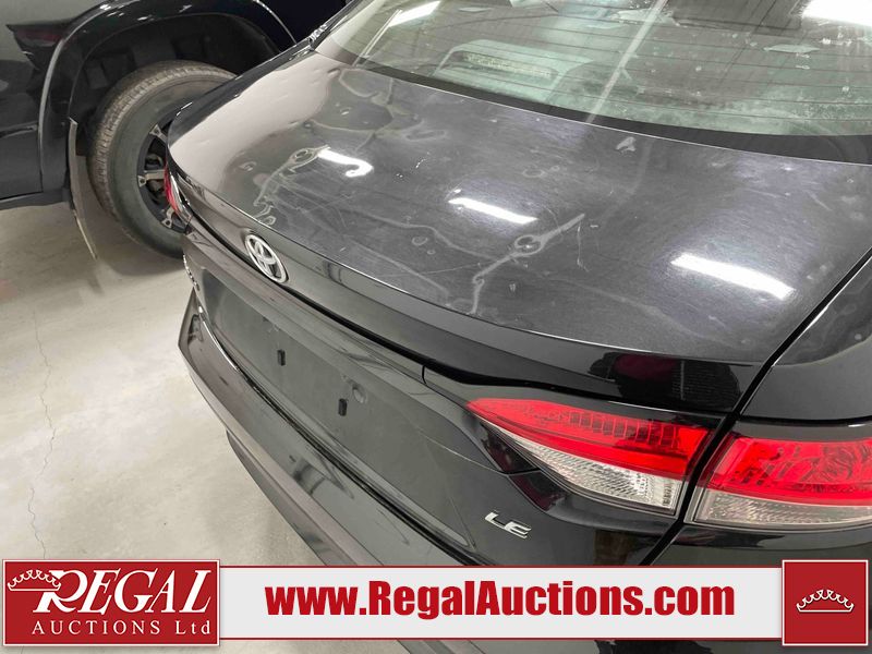 This 2021 TOYOTA COROLLA LE 4D SEDAN FWD 1.8L is powered by a 4 cylinder gasoline engine and an automatic transmission. The car has seats for 5 people. The car has high mileage for its age. The vehicle has high value options including a sunroof, heated seats, and a backup camera. The body looks to be in rough condition overall. There is misaligned damage to the front bumper. The hood and left front fender have been repainted poorly. There is severe hail on the roof, left front door, left rear door, left rear fender, trunk lid, right rear fender, right rear door, and right front door. There is some hail on the right front fender. There are chips on the front bumper, grille, and hood. There are scratches on the front bumper, hood, left rear door, and trunk lid. There is slight dent damage on the hood. There is slight rust on the roof. There is minimal paint peeling on the roof. There are very minor chips in many areas around the body. There are very minor scratches in many areas around the body. The interior looks to be in fair condition overall. There are moderate stains on the driver's seat and passenger seat. The carpet is dirty. The roof liner is dirty. The windshield is cracked. All of the tires have lots of tread remaining. Aftermarket alloy wheels with winter tires have been mounted. The factory alloys with all season tires mounted are in the trunk.