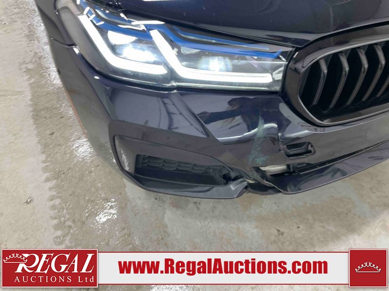 This 2022 BMW 5-SERIES 540I XDRIVE 4D SEDAN AWD 3.0L is powered by a turbocharged 6 cylinder gasoline engine and an automatic transmission. It is equipped with four wheel drive. The car has seats for 5 people. The car has high mileage for its age. The vehicle has high value options including a sunroof, leather upholstery, power seats, heated seats, navigation, and a backup camera. The body looks to be in good condition overall. There is sensor missing damage to the front bumper. The front bumper is cracked. There are chips on the front bumper, hood, and roof. There are scratches on the left rear fender, right rear fender, and right rear door. There are very minor scratches in many areas around the body. There are very minor chips in many areas around the body. The vin plate has been torn out of the dash, as well as the door sticker. The interior looks to be in fair condition overall. The passenger seat and rear seats are dirty. The carpet is dirty. The windshield is damaged. All of the tires have lots of tread remaining.