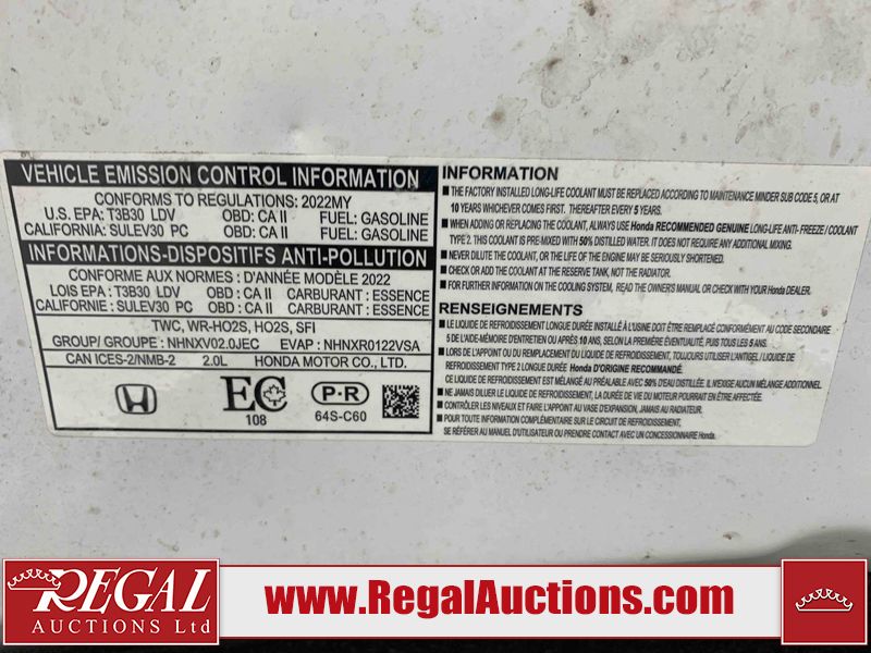 2022 HONDA CIVIC SPORT 4D SEDAN FWD 2.0L