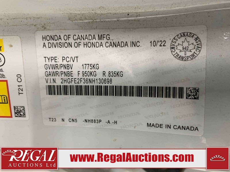 2022 HONDA CIVIC EX 4D SEDAN FWD 2.0L