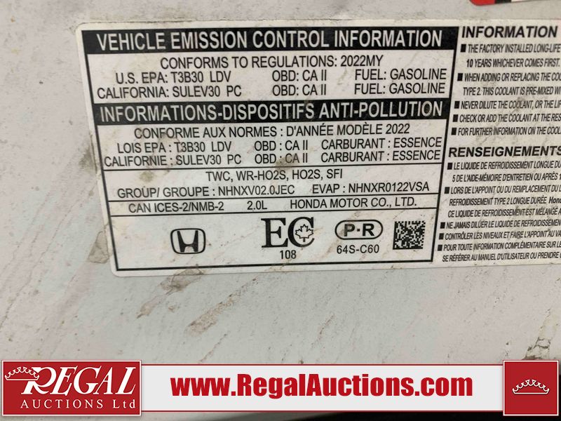 This 2022 HONDA CIVIC EX 4D SEDAN FWD 2.0L is powered by a 4 cylinder engine and an automatic transmission. The car has seats for 5 people. The mileage is average considering the car's age. The vehicle has high value options including a sunroof, heated seats, and a backup camera. The body looks to be in good condition overall. There are scratches on the front bumper. There are slight chips on the front bumper. There are very minor chips in many areas around the body. There are very minor scratches in many areas around the body. There is very minor dent damage on the trunk lid. The interior looks to be in rough condition overall. The roof liner is torn. The driver's seat, passenger seat, and rear seats are stained. The driver's seat, passenger seat, and doors are dirty. The carpet is dirty. The windshield is chipped. All of the tires have lots of tread remaining.