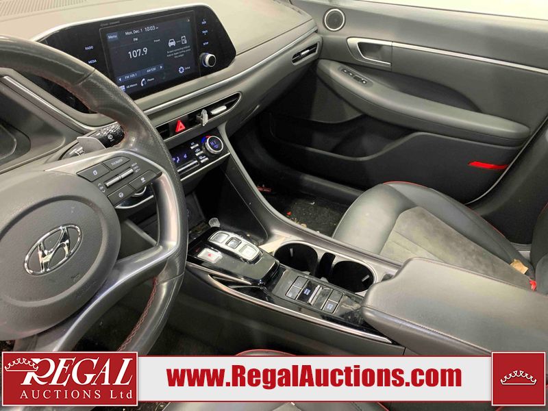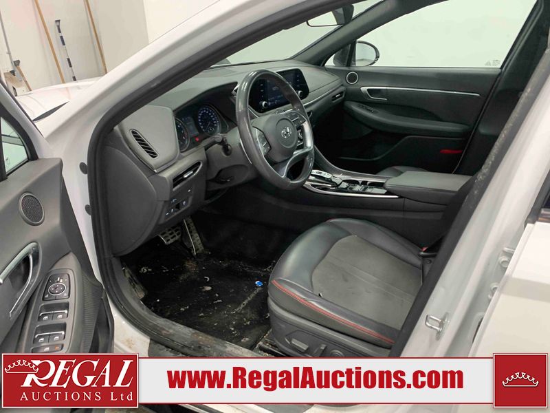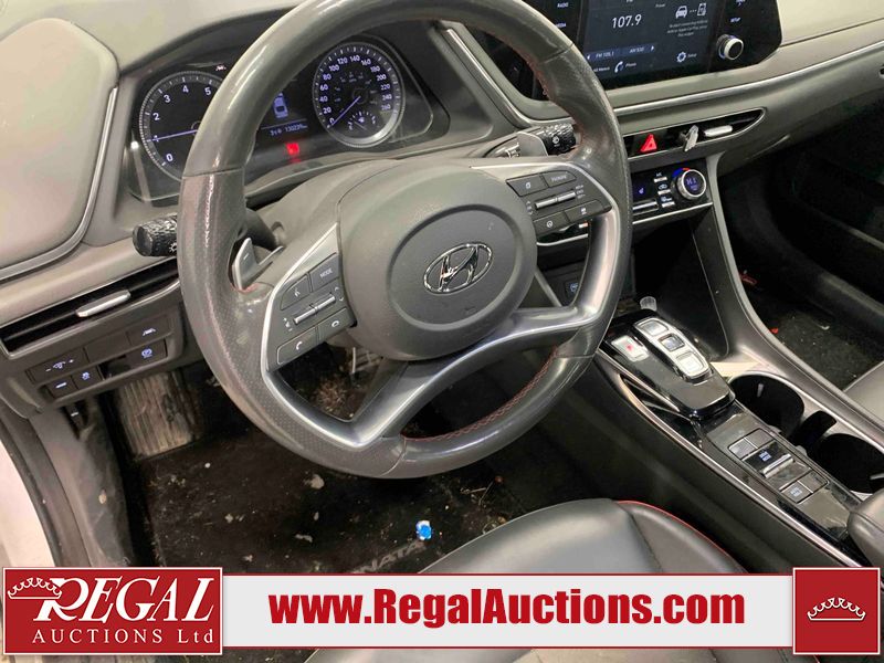 This 2022 HYUNDAI SONATA SPORT 4D SEDAN 1.6L is powered by a turbocharged 4 cylinder gasoline engine and an automatic transmission. The car has seats for 5 people. The car has high mileage for its age. The vehicle has high value options including a sunroof, power seats, heated seats, and a backup camera. The body looks to be in good condition overall. There is incidental dent damage on the hood, left front fender, and left front door. There are minimal scratches on the rear bumper. There is minor hail on the trunk lid. There are very minor chips in many areas around the body. There are very minor scratches in many areas around the body. There is very minor dent damage on the left rear fender. The interior looks to be in good condition overall. The windshield looks to be in good condition. All of the tires have lots of tread remaining.