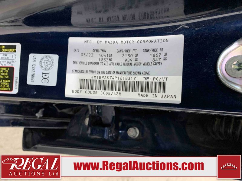 This 2023 MAZDA MAZDA3 GX 4D HATCHBACK 2.0L is powered by a 4 cylinder gasoline engine and an automatic transmission. The car has seats for 5 people. The mileage is average considering the car's age. The vehicle has high value options including heated seats and a backup camera. The Tire Pressure light is on. The body looks to be in good condition overall. There are very minor chips in a few areas around the body. There are very minor scratches in many areas around the body. The interior looks to be in good condition overall. The windshield is chipped. All of the tires have lots of tread remaining.