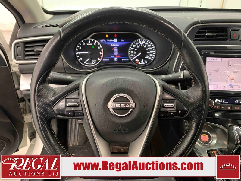 This 2023 NISSAN MAXIMA SL 4D SEDAN FWD 3.5L is powered by a 6 cylinder gasoline engine and an automatic transmission. The car has seats for 5 people. The car has high mileage for its age. The vehicle has high value options including a sunroof, leather upholstery, power seats, heated seats, navigation, and a backup camera. The body looks to be in fair condition overall. There are chips on the front bumper, grille, and hood. There are scratches on the front bumper, hood, and rear bumper. There is minimal dent damage on the left front door. There are very minor chips in many areas around the body. There are very minor scratches in many areas around the body. There is very minor dent damage in a few areas around the body. The interior looks to be in good condition overall. The carpet is dirty. The windshield is chipped. All of the tires have lots of tread remaining.