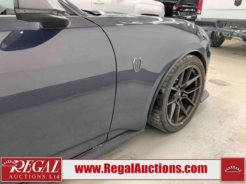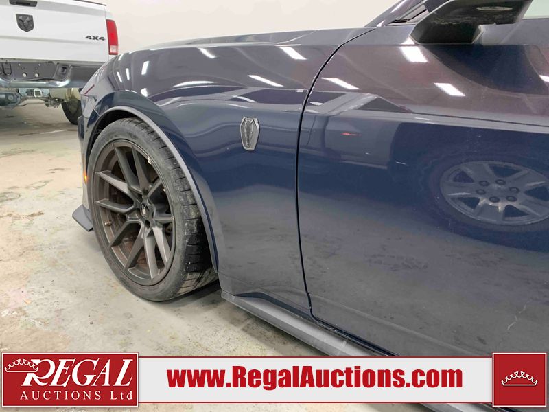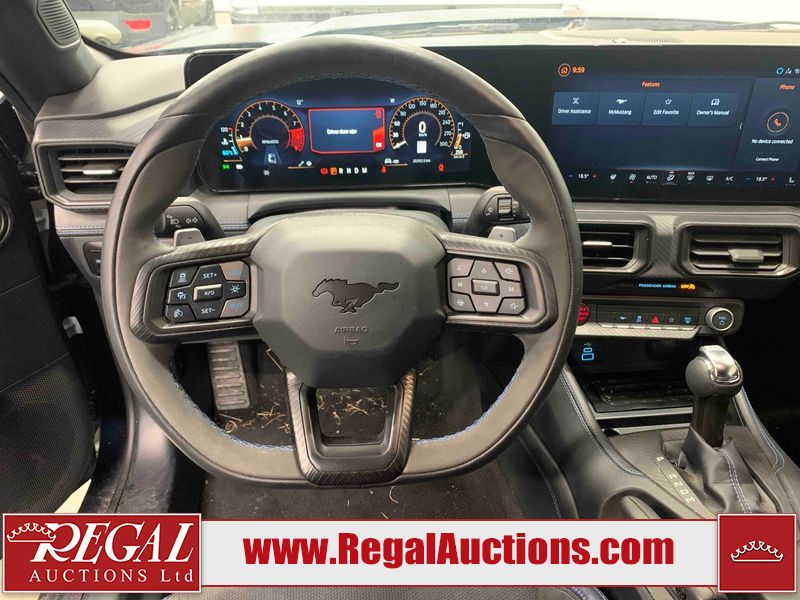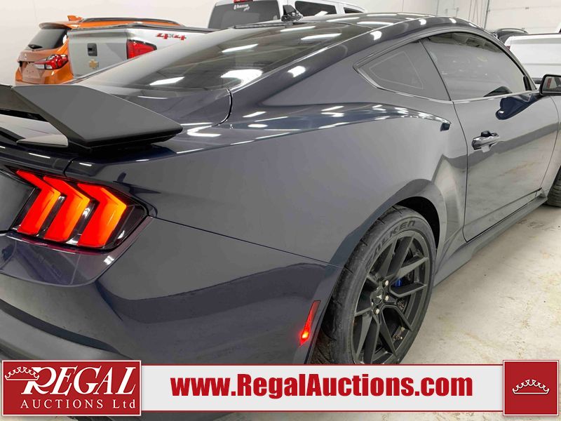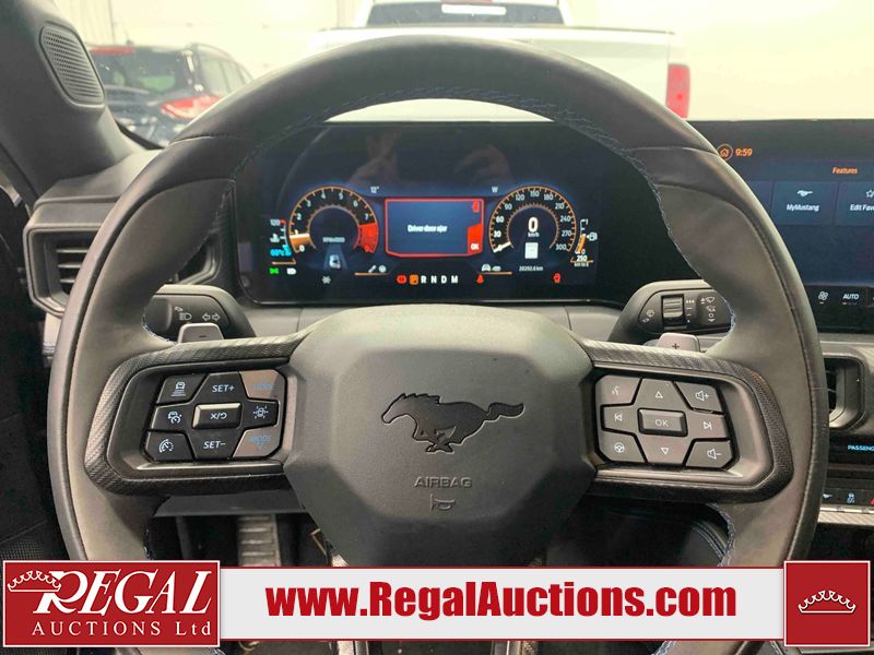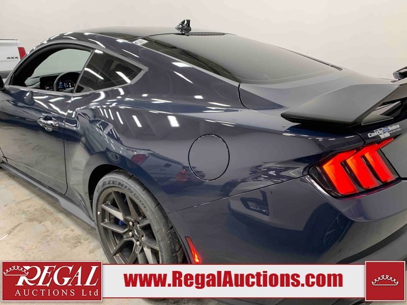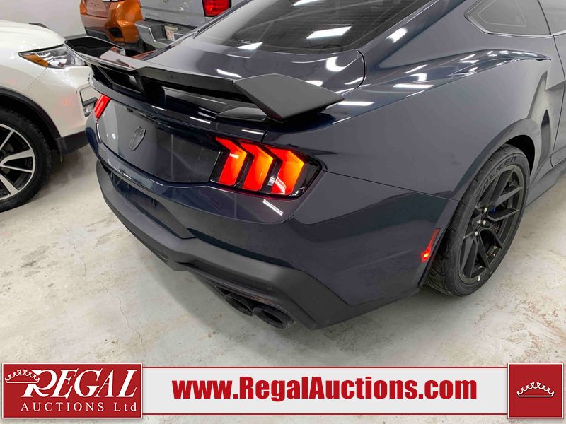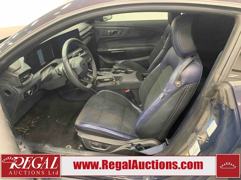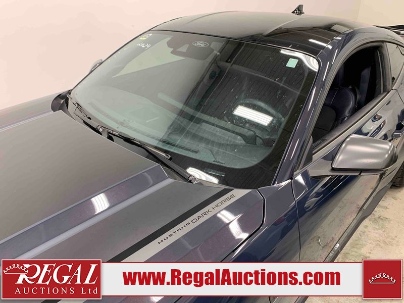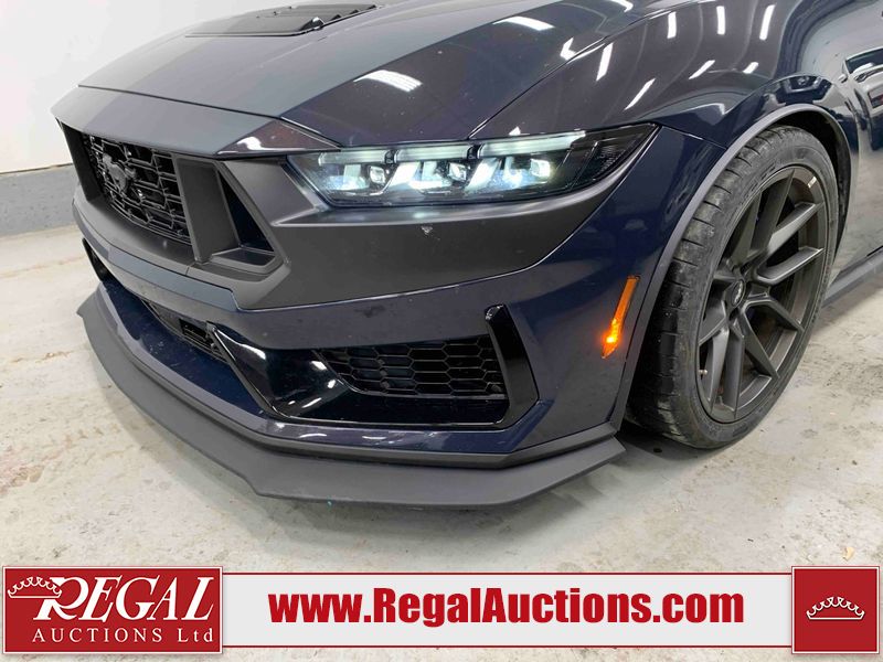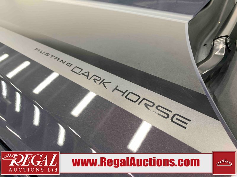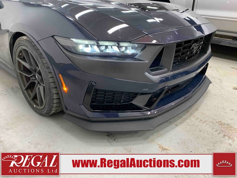 This 2024 FORD MUSTANG DARK HORSE 2D COUPE RWD 5.0L is powered by a 5.0L 8C 8 cylinder gasoline engine and an automatic transmission. The car has seats for 4 people. The car has low mileage for its age. The vehicle has high value options including leather upholstery, power seats, heated seats, navigation, and a backup camera. The body looks to be in good condition overall. There is slight dent damage on the right front door. There are very minor chips in many areas around the body. There are very minor scratches in many areas around the body. The interior looks to be in good condition overall. The carpet is dirty. The windshield is chipped. The rear tires are worn. The front tires have lots of tread remaining.