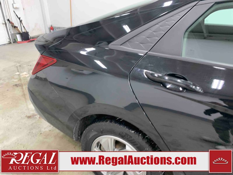 This 2024 HYUNDAI ELANTRA ESSENTIAL 4D SEDAN FWD 2.0L is powered by a 4 cylinder gasoline engine and an automatic transmission. The car has seats for 5 people. The car has high mileage for its age. The vehicle has high value options including heated seats, navigation, and a backup camera. The Tire Pressure and Maintenance lights are on. The body looks to be in fair condition overall. There is severe dent damage on the roof. There are slight chips on the front bumper and hood. There are minimal scratches on the front bumper, roof, left rear door, and trunk lid. There are very minor chips in many areas around the body. There are very minor scratches in many areas around the body. The interior looks to be in fair condition overall. The windshield is chipped. All of the tires have lots of tread remaining.