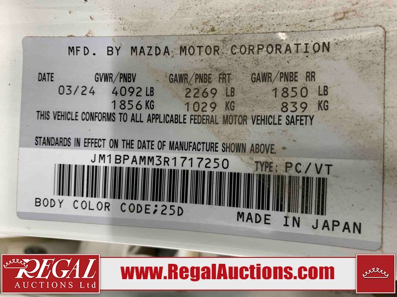 This 2024 MAZDA MAZDA3 SPORT GT 4D HATCHBACK FWD 2.5L is powered by a 4 cylinder gasoline engine and an automatic transmission. The car has seats for 5 people. The car has high mileage for its age. The vehicle has high value options including a sunroof, leather upholstery, power seats, heated seats, navigation, and a backup camera. The body looks to be in good condition overall. There are incidental chips on the front bumper, hood, and roof. There are scratches on the rear bumper. There are very minor scratches in many areas around the body. There are very minor chips in many areas around the body. There is very minor dent damage in a few areas around the body. The interior looks to be in fair condition overall. The dashboard is dirty. The carpet is dirty. The windshield is cracked. The front tires are nearly bald and should be replaced. The rear tires are worn.