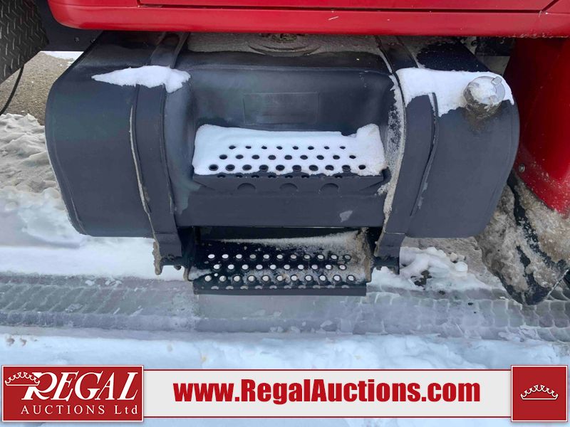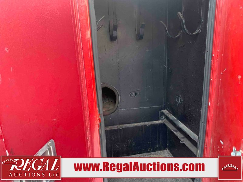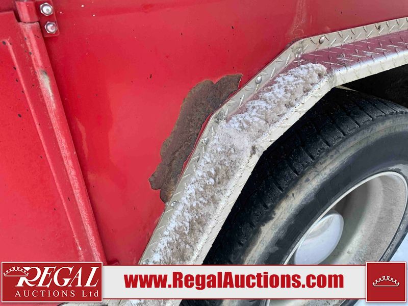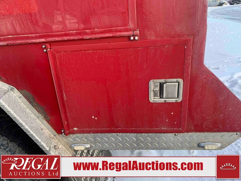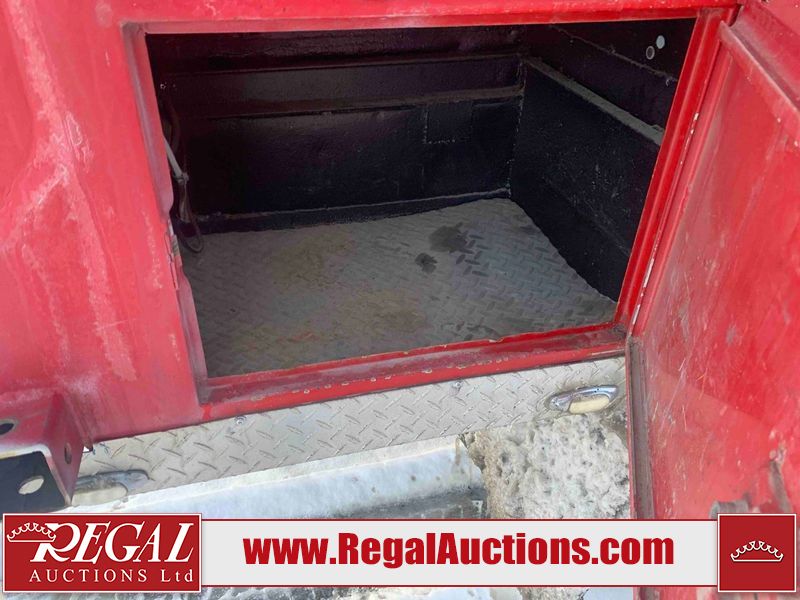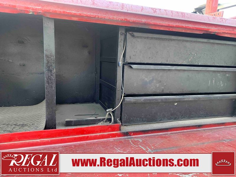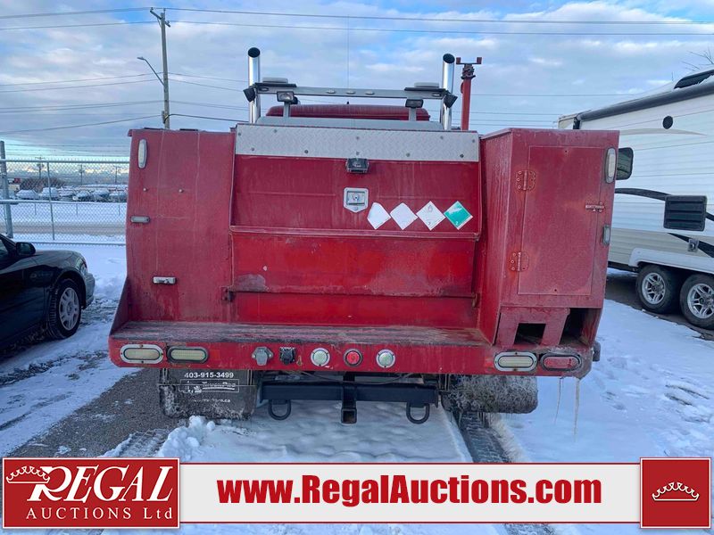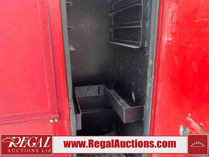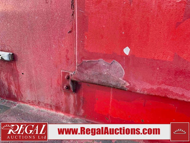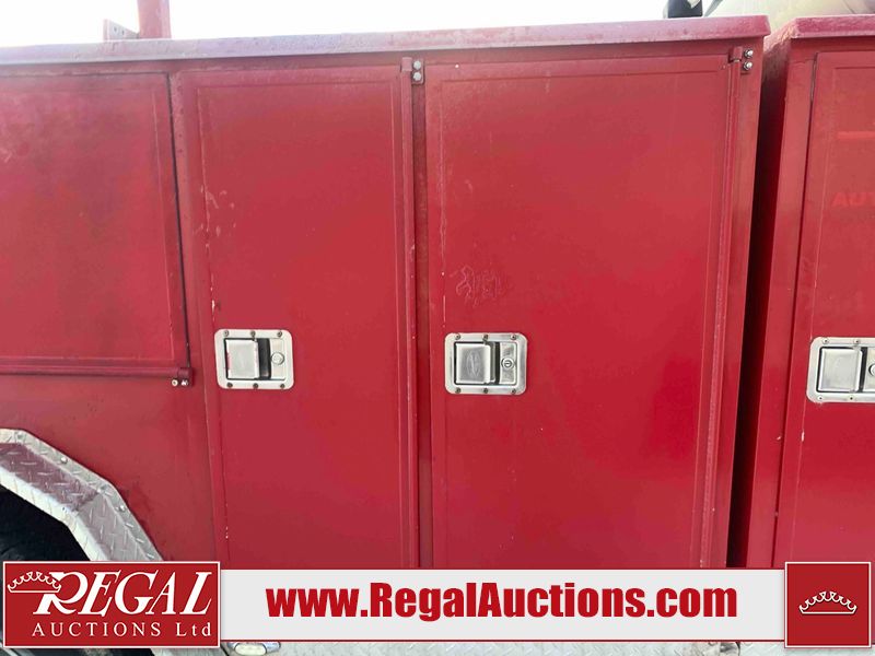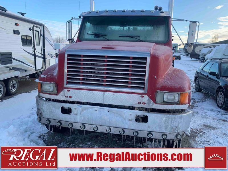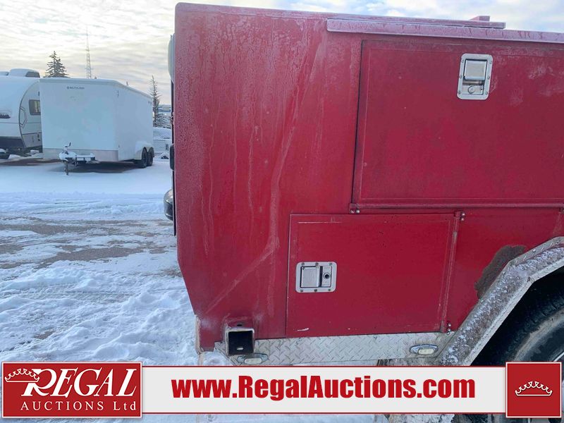 This unit is a 2000 International 4700 day cab single axle service truck. The odometer shows 360,306 km. It has a GVWR of 30,000lbs. Its CVIP is 10/2024. The interior is dirty. The seats are worn. The dash has scratches and scuffs, the whole interior is showing its age. The driver’s door is cracked from the interior. This unit is equipped with a aftermarket stereo system, and a back up camera. The backup camera and stereo system is inoperable. The front end is showing chips, scratches, and stops. The grill has a dent. The engine cover has peeling paint. Both doors are are chipped. The left front utility door is cracked. Both rear fenders has peeling paint. The rear bumper has penetrating rust. The left rear refractor lamp is broken. All the rear utility panels are showing scratches and scuffs. This unit starts and runs with a boost. This unit is powered by a DT466E 7.6 L in-line six cylinder turbo diesel engine and an automatic transmission. There is no emissions sticker. The tires have been mounted to steel rims and appear to be good enough condition for use. This unit is equipped with air brakes, and an engine shut down switch. It has a front axle of 10,000 pounds and a rear axle of 20,000 pounds.