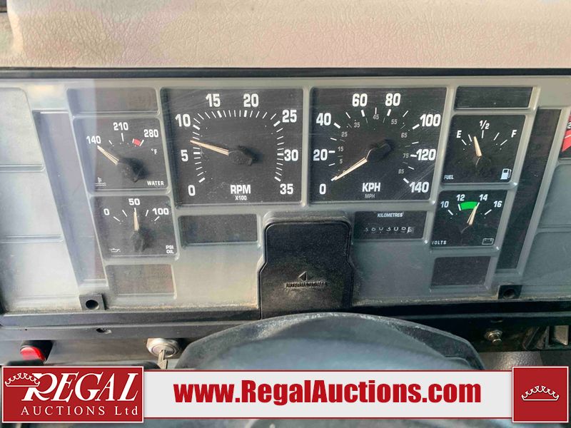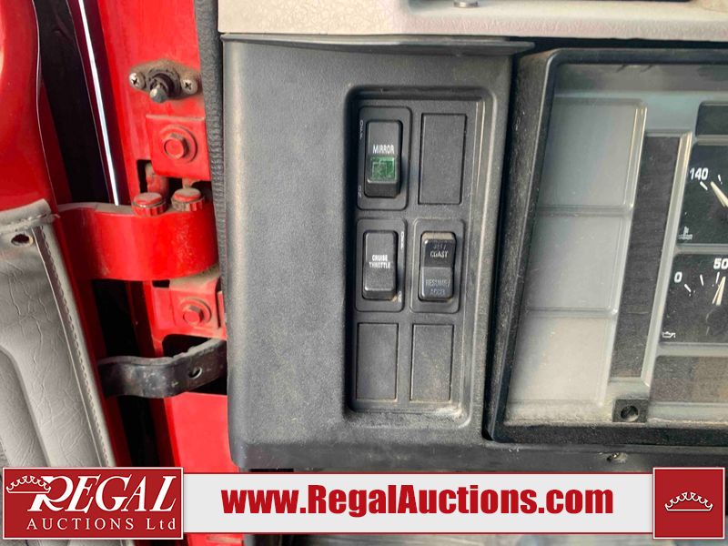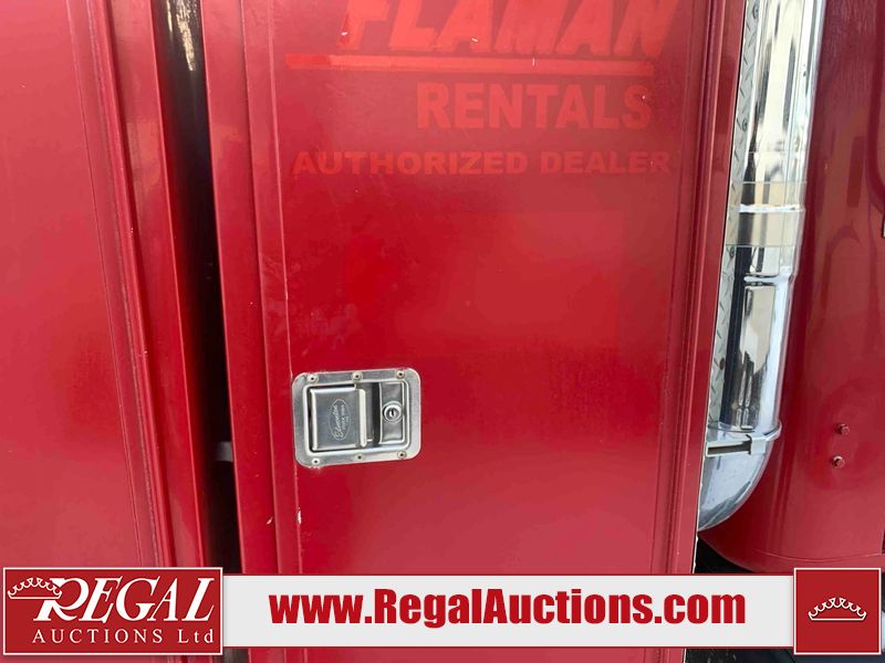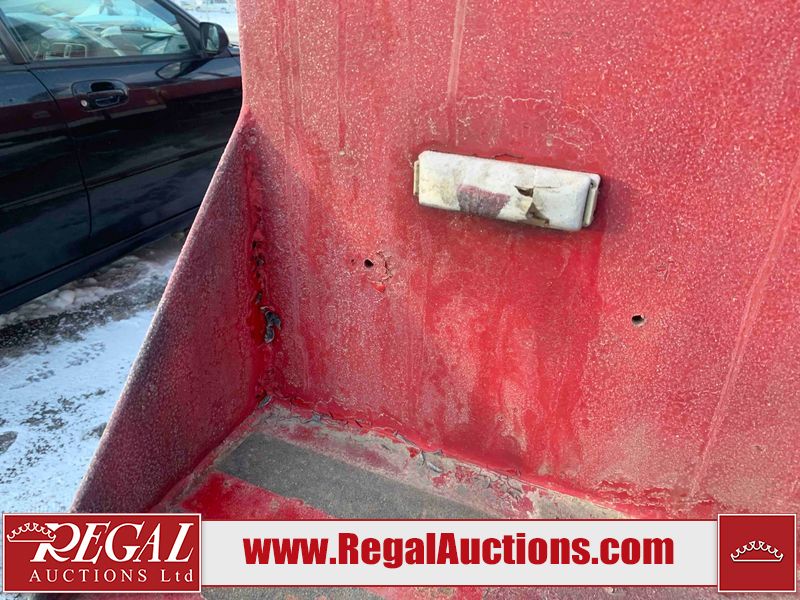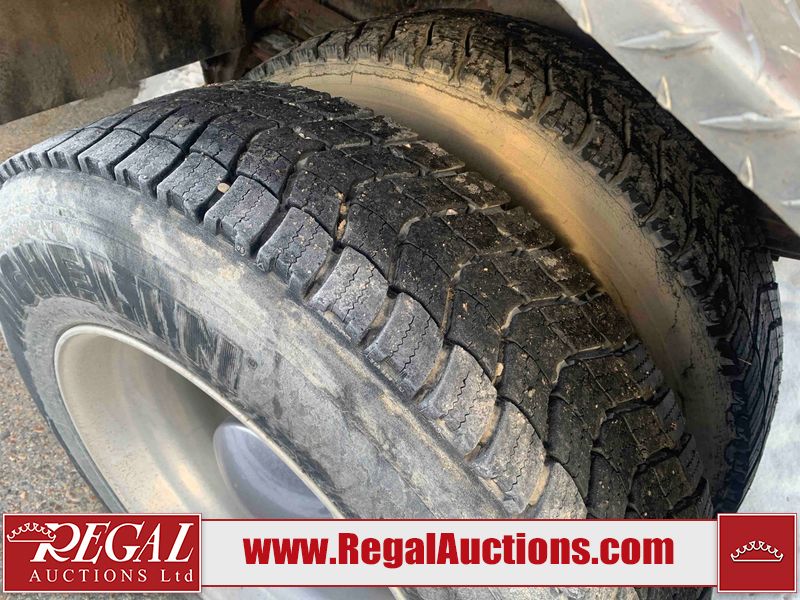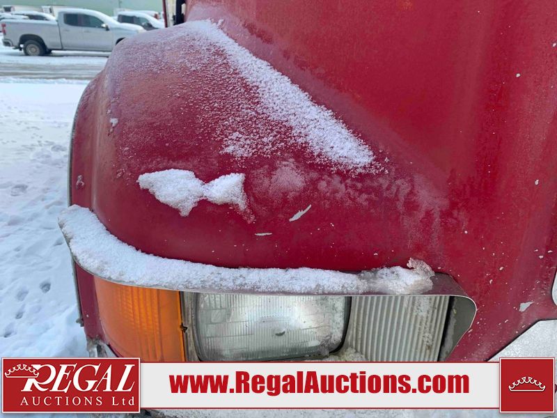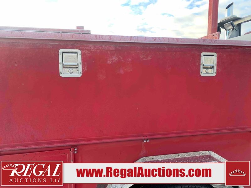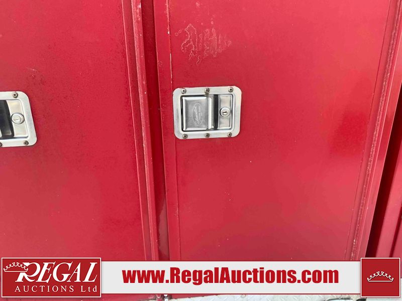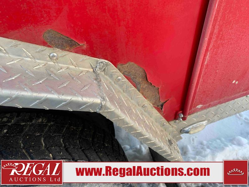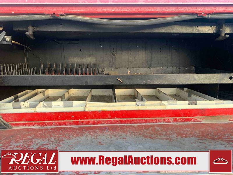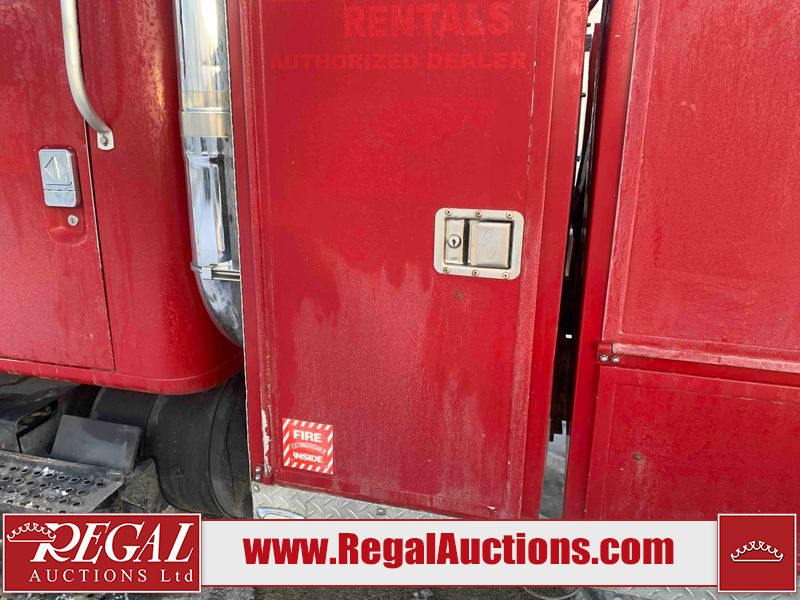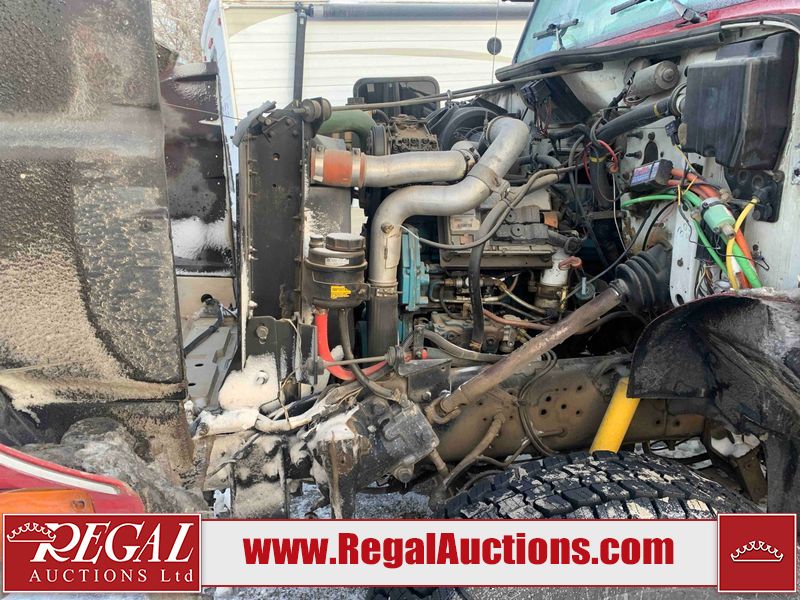 This unit is a 2000 International 4700 day cab single axle service truck. The odometer shows 360,306 km. It has a GVWR of 30,000lbs. Its CVIP is 10/2024. The interior is dirty. The seats are worn. The dash has scratches and scuffs, the whole interior is showing its age. The driver’s door is cracked from the interior. This unit is equipped with a aftermarket stereo system, and a back up camera. The backup camera and stereo system is inoperable. The front end is showing chips, scratches, and stops. The grill has a dent. The engine cover has peeling paint. Both doors are are chipped. The left front utility door is cracked. Both rear fenders has peeling paint. The rear bumper has penetrating rust. The left rear refractor lamp is broken. All the rear utility panels are showing scratches and scuffs. This unit starts and runs with a boost. This unit is powered by a DT466E 7.6 L in-line six cylinder turbo diesel engine and an automatic transmission. There is no emissions sticker. The tires have been mounted to steel rims and appear to be good enough condition for use. This unit is equipped with air brakes, and an engine shut down switch. It has a front axle of 10,000 pounds and a rear axle of 20,000 pounds.