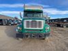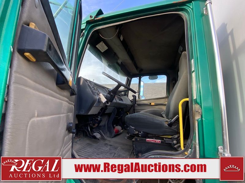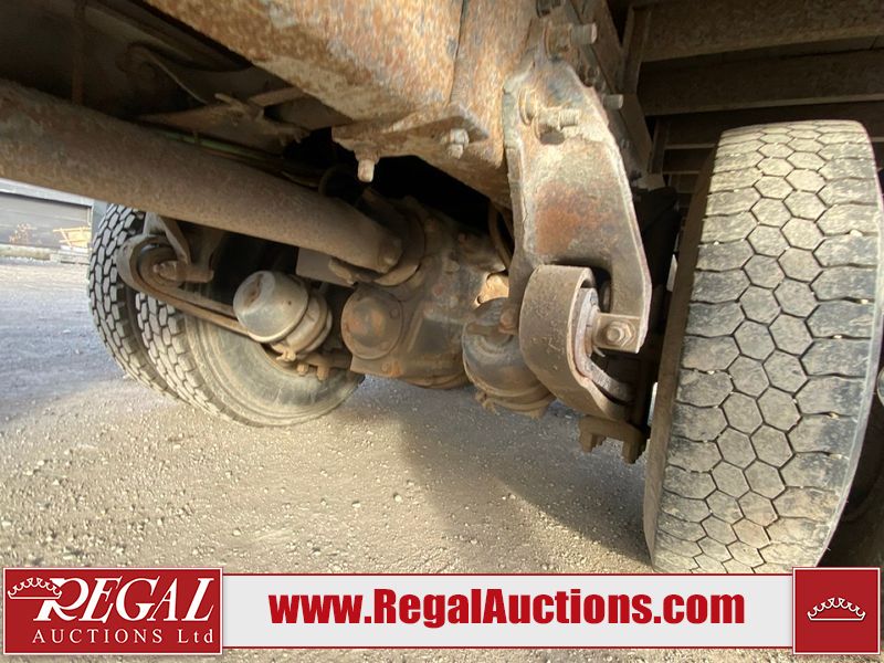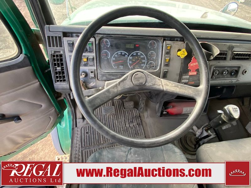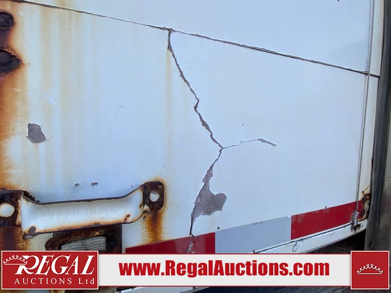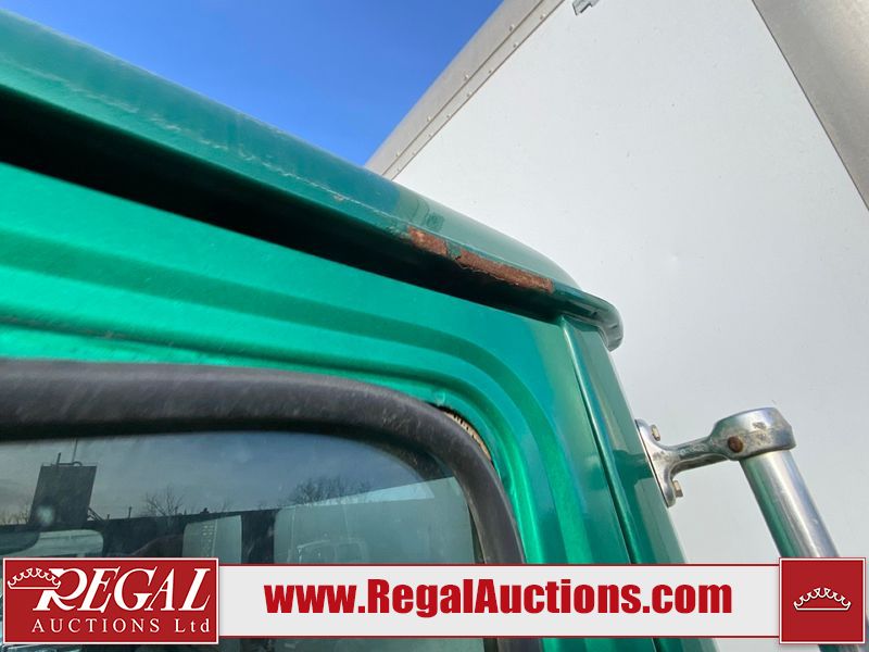 This unit is a 2004 freight liner FL112 conventional cab model axle cube truck. The odometer shows 89548km. The engine hours cannot be confirmed. It’s GVWR is 54,000 pounds. It has a CVIP of 10/2022. The interior is dirty. Both seats are stained. The dash has peeling paint. The roof has cigarette burn holes. The roof liner is falling. The box interior floors are made of wood paneling. Both walls are cracked. The rear utility metal flooring is cracked and has penetrating rust. Most panels are showing chips, scratches, and scuffs. The front bumper is misaligned and has been repainted/peeling paint. The engine cover is cracked and has been poorly resealed. The front cab panels are dented and peeling paint. Both doors have been repainted. Both the left and right box walls is dented and has deep scratches. The rear door is gouged. This unit starts and runs with a boost. The tensioner belt is noisy. This unit is powered by a Mercedes-Benz 12.8l turbo diesel engine and a 10 speed manual transmission. Tires are out at the steel rims and appear to be in good enough condition for use. This unit is equipped with air brakes, air/leaf spring, suspension, locking differential, and rear sliding axles. It has a 14,000 pound front axle and 40,000 pound rear axles.
