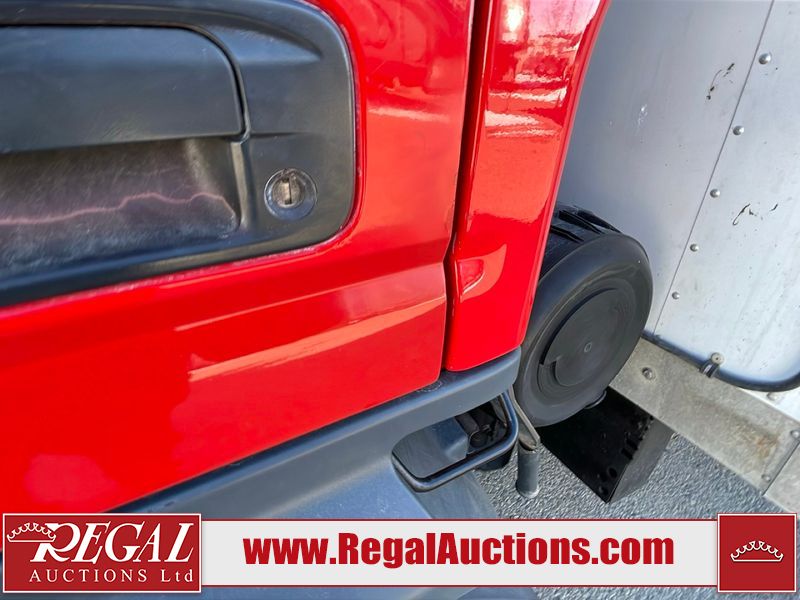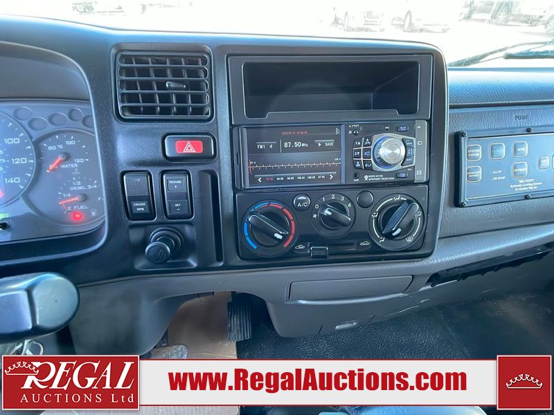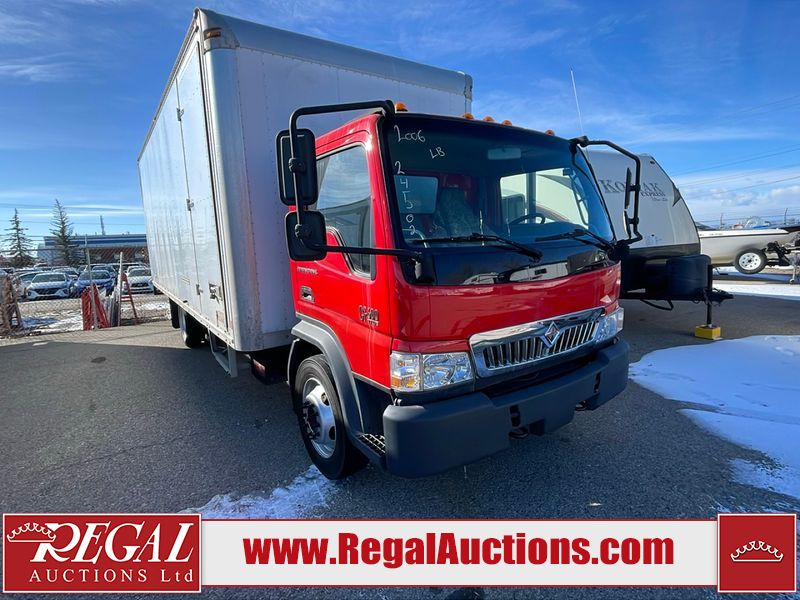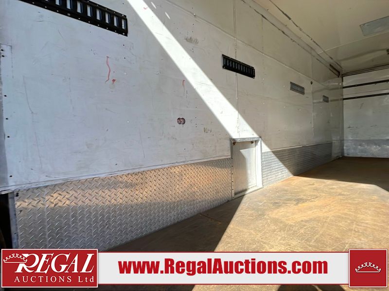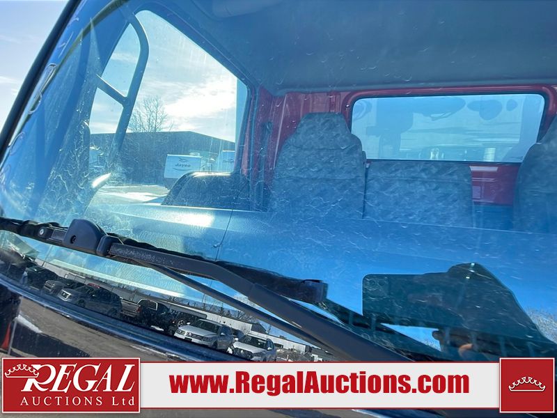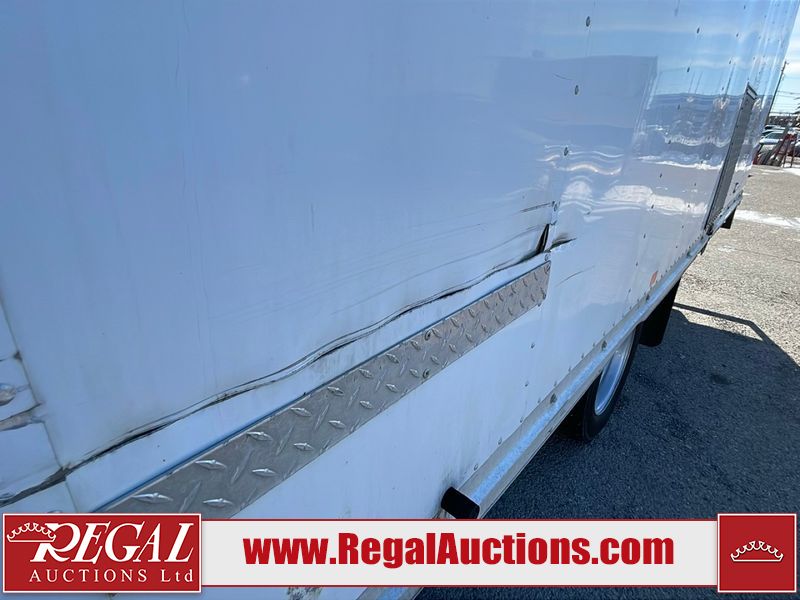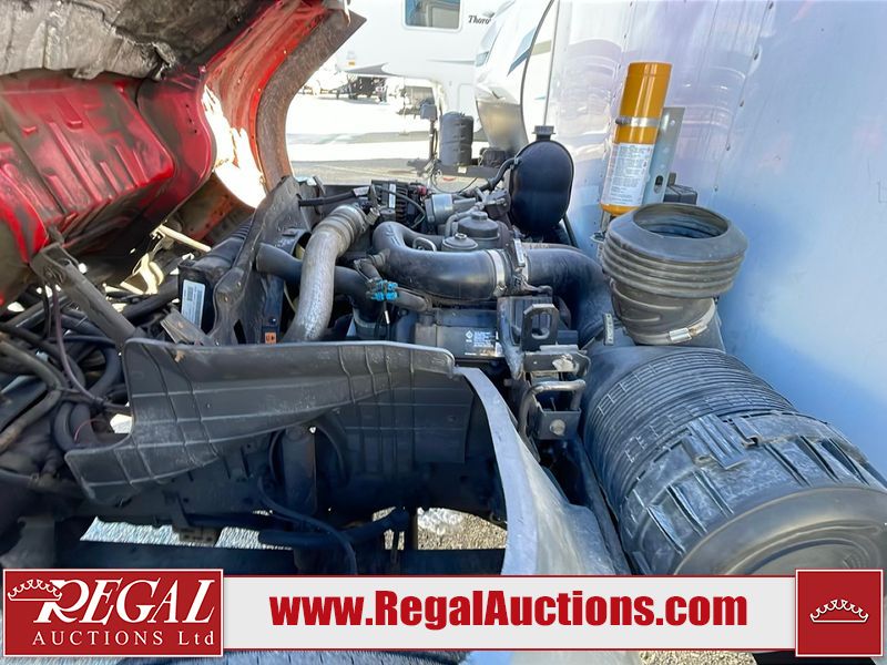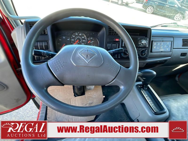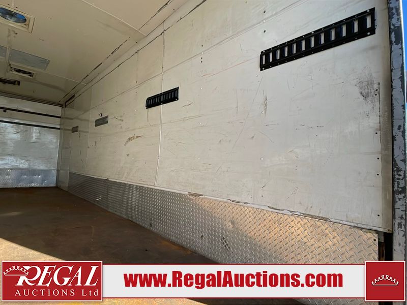 This unit is a 2006 international CF600 VT275 single axle reefer cube van. The odometer shows 107,946 km. It’s GVWR is 19,500 pounds. It has a CVIP of 03/2023. The interior is clean. The dash has minor scrapes. The seat is torn. The roof liner is dirty. The cab has been repainted. The front of the cap has minor chips. The windshield is cracked. The window weatherstripping is peeling. Both doors have minor scratches. The left wall is cracked and has deep scratches. The rear frame has been repainted. The rear right fender is cracked. The right wall has dents. The alloy rims have been repainted. This unit starts to run without a boost. There is a ether injection system equipped to the ignition. This unit is powered by a 4.5L six cylinder turbo, diesel engine and an automatic transmission. The tires are mounted to alloy rims and appeared to be in good enough condition for use. This unit is equipped with a Bigfoot hydraulic levelling system.