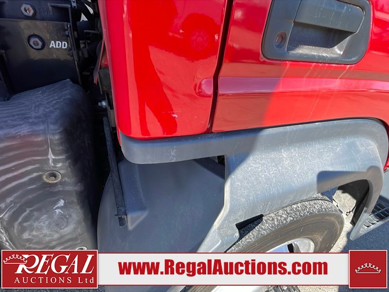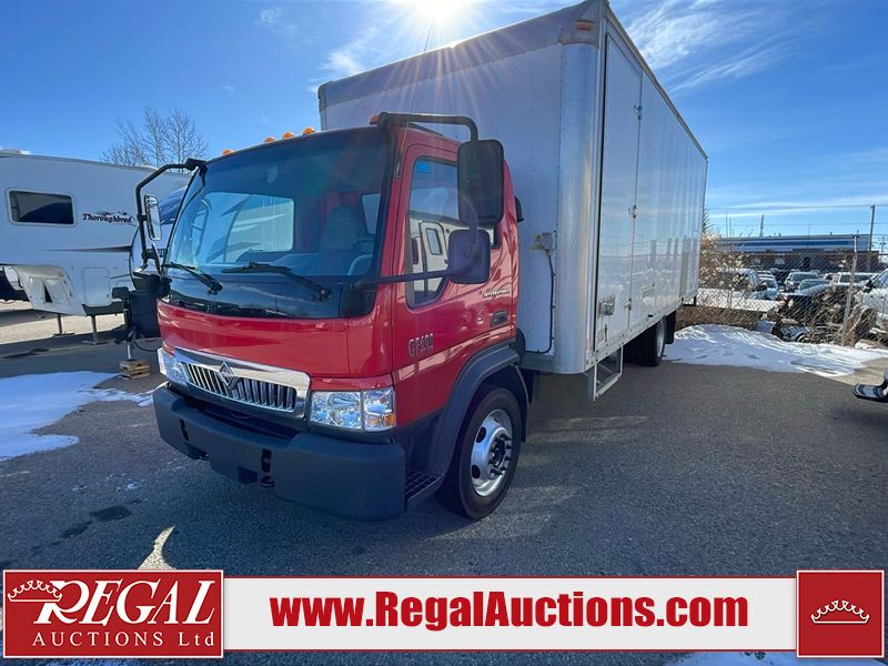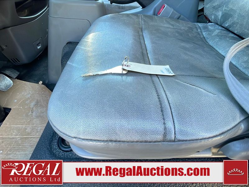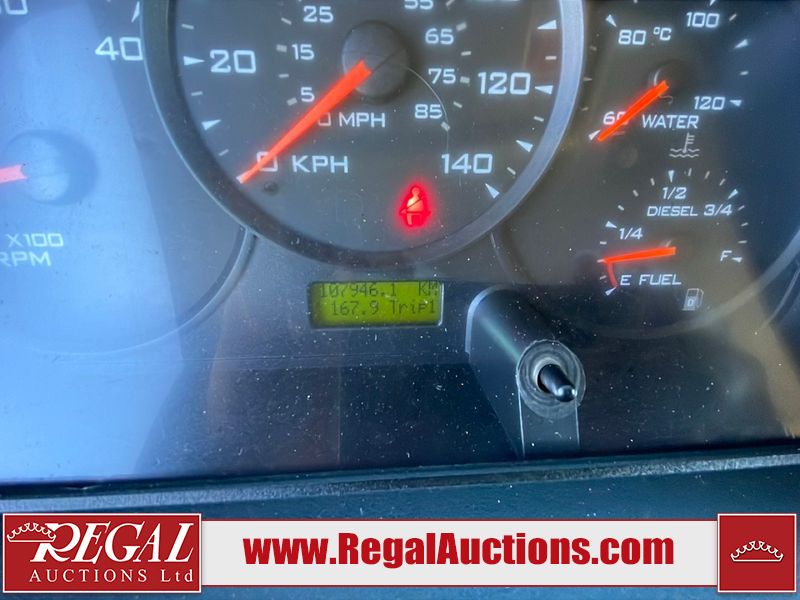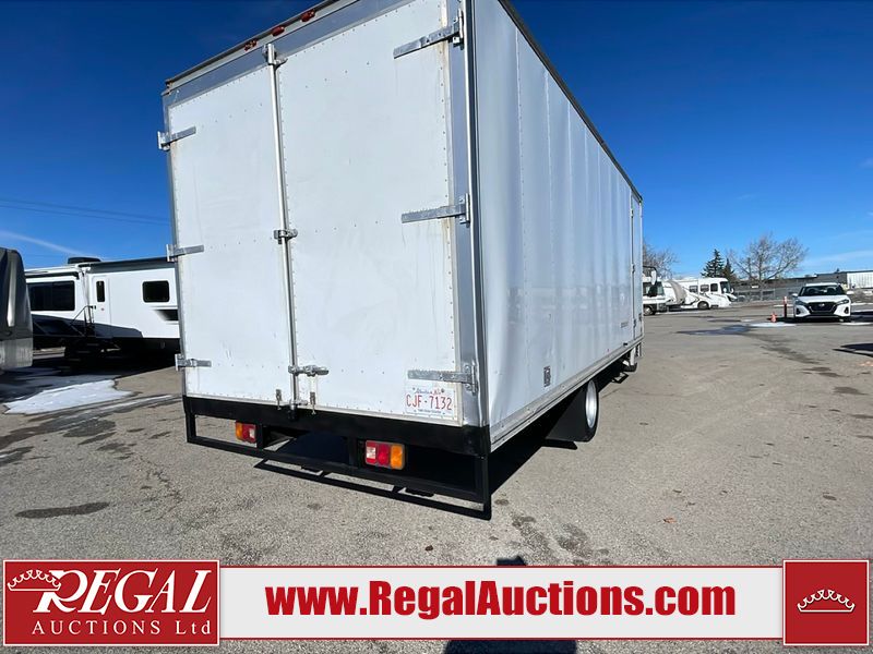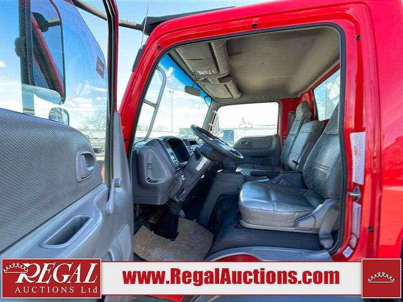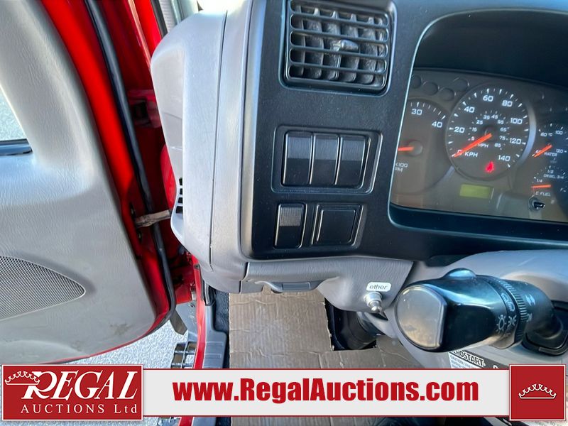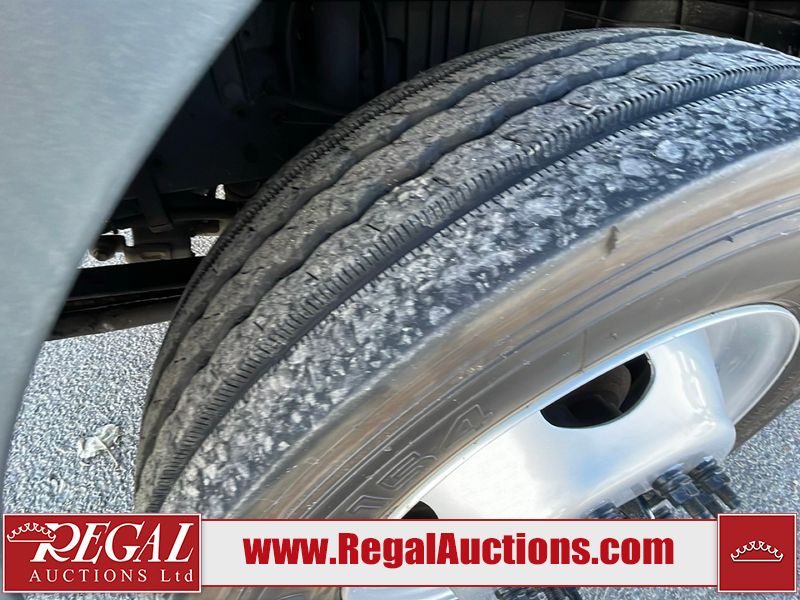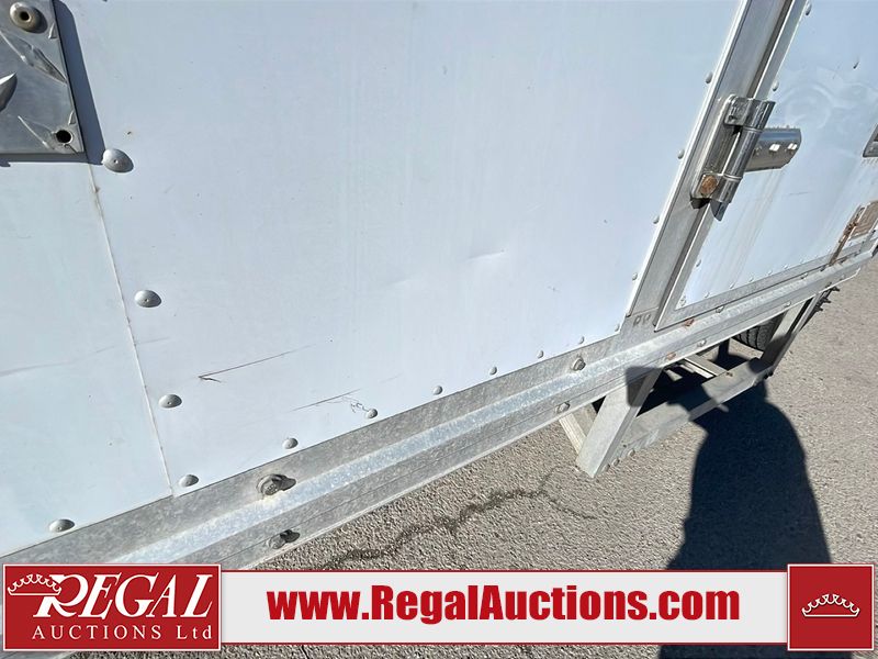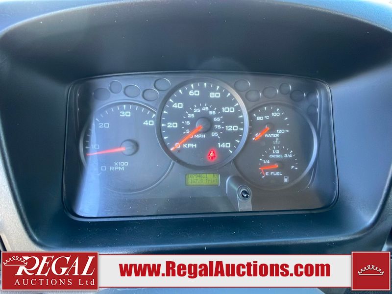 This unit is a 2006 international CF600 VT275 single axle reefer cube van. The odometer shows 107,946 km. It’s GVWR is 19,500 pounds. It has a CVIP of 03/2023. The interior is clean. The dash has minor scrapes. The seat is torn. The roof liner is dirty. The cab has been repainted. The front of the cap has minor chips. The windshield is cracked. The window weatherstripping is peeling. Both doors have minor scratches. The left wall is cracked and has deep scratches. The rear frame has been repainted. The rear right fender is cracked. The right wall has dents. The alloy rims have been repainted. This unit starts to run without a boost. There is a ether injection system equipped to the ignition. This unit is powered by a 4.5L six cylinder turbo, diesel engine and an automatic transmission. The tires are mounted to alloy rims and appeared to be in good enough condition for use. This unit is equipped with a Bigfoot hydraulic levelling system.