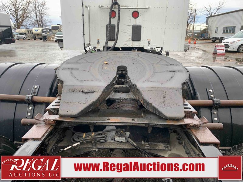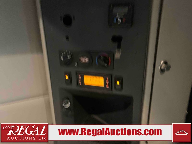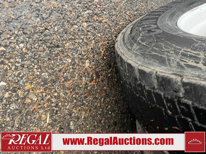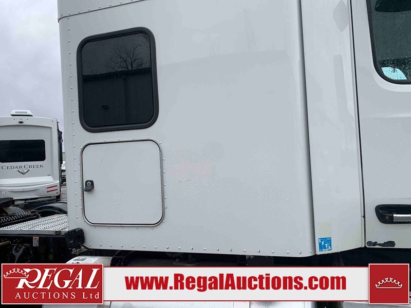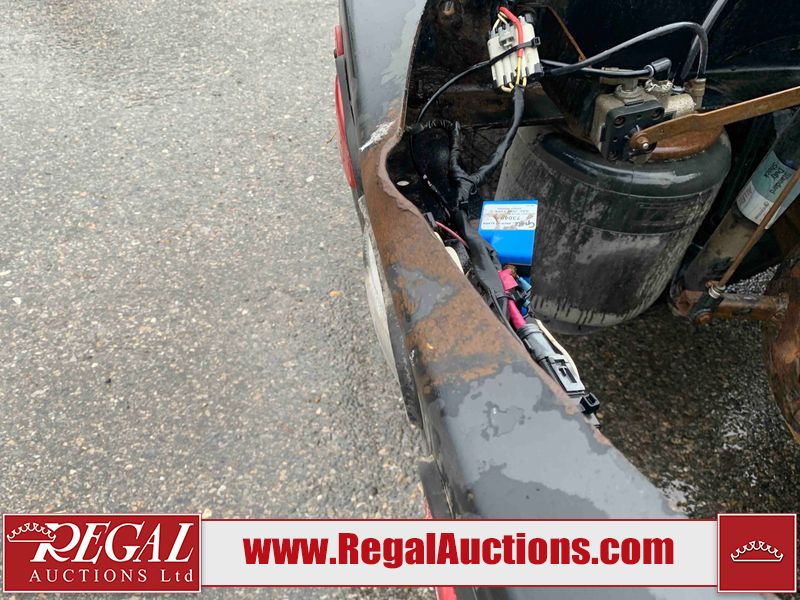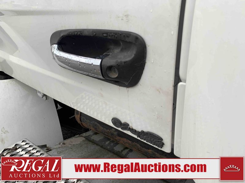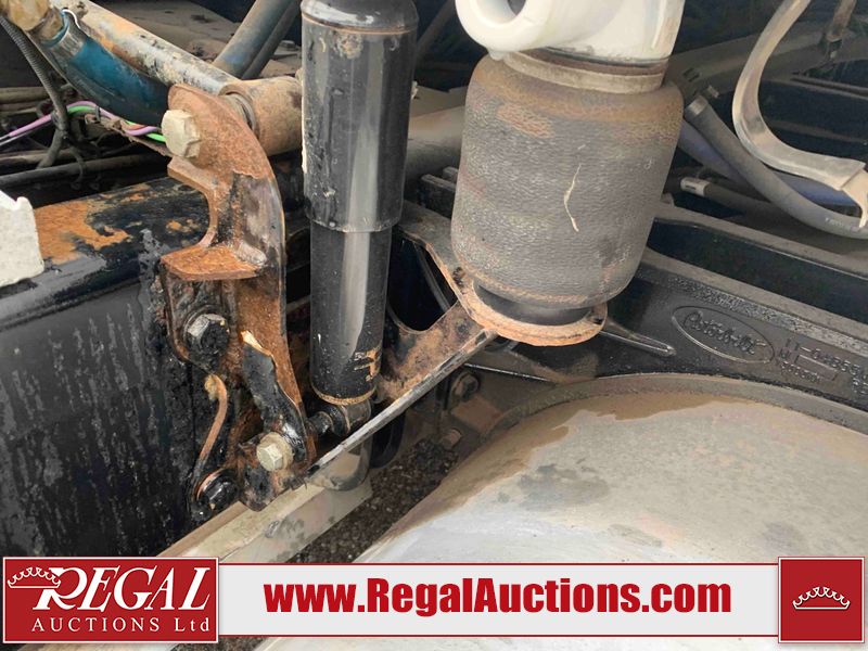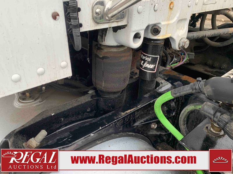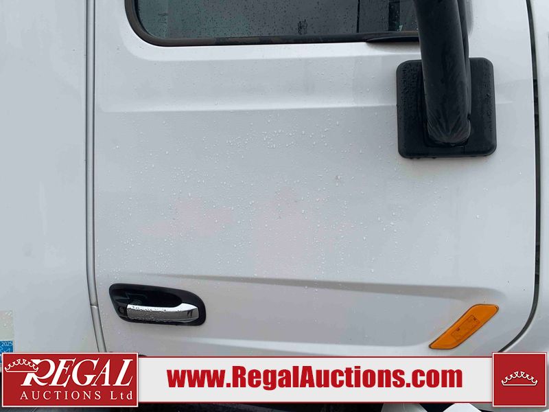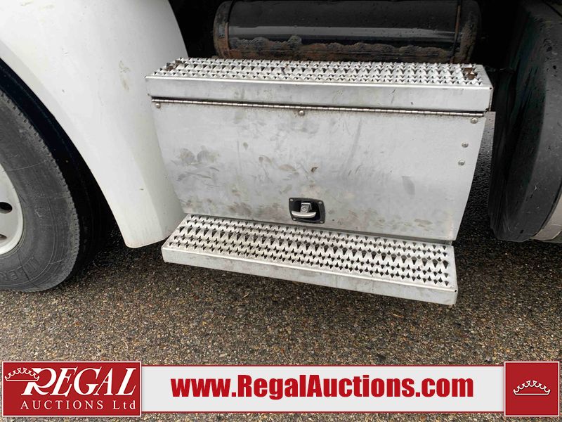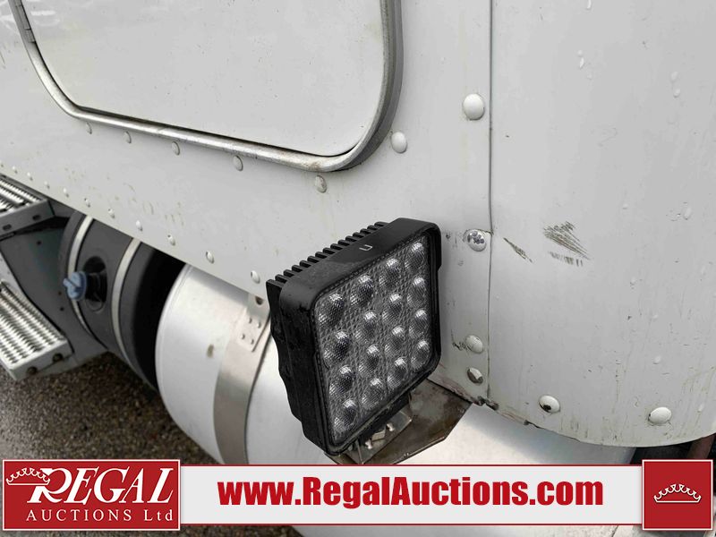This unit is a 2019 Peterbuilt 579 single sleeper tandem axle Highway tractor. The odometer shows 870,524 km and 14,784 engine hours. It’s GVWR is 53,200 pounds. It’s CV is 04/2026. The interior is dirty. The driver and passenger seat are worn. Both the driver and passenger seat armrest are disconnected and missing. The steering wheel is worn. The bed is stained. The left cab light is missing. There are scratches and scuffs on most panels. It is equipped with a bed, refrigerator, rear climate control, stereo system, and a CB radio. The front end is showing scratches and scuffs. The front bumper has a piece missing. The engine cover has peeling paint. Both front doors, side and rear cab are showing scratches, scuffs, and dents. The rear part of the frame has a dent. This unit starts and runs without a boost. This unit is power by a Paccar MX13 12.9 L six cylinder turbo diesel engine and an automatic transmission. the tires are mounted to steel rims and appear to be in good enough condition for use. This unit is equipped with air brakes, air suspension, rear locking axles, and a PTO kit. It has a front axle of 13,200 pounds and a rear axle of 40,000 pounds.